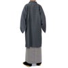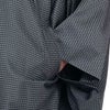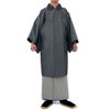 春秋などに着られる薄手の角袖コートです。袖の部分が大きく開いており、着物を着用したまま羽織ることができる和装コートで比翼ボタンで襟元や胸元もスッキリとした印象の着姿になります。