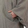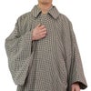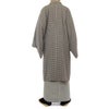 角袖コートは袖の部分が大きく開いており、着物を着用したまま羽織ることができる和装コートです。比翼ボタンで襟元や胸元もスッキリとした印象の着姿になります。