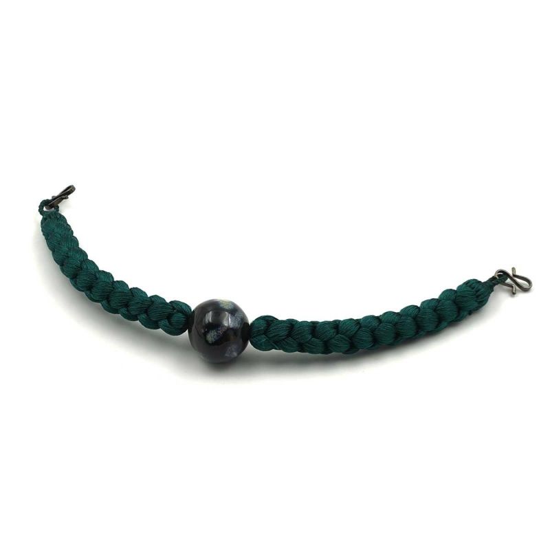 羽織紐 男 清水焼 無双 正絹 緑×黒紺