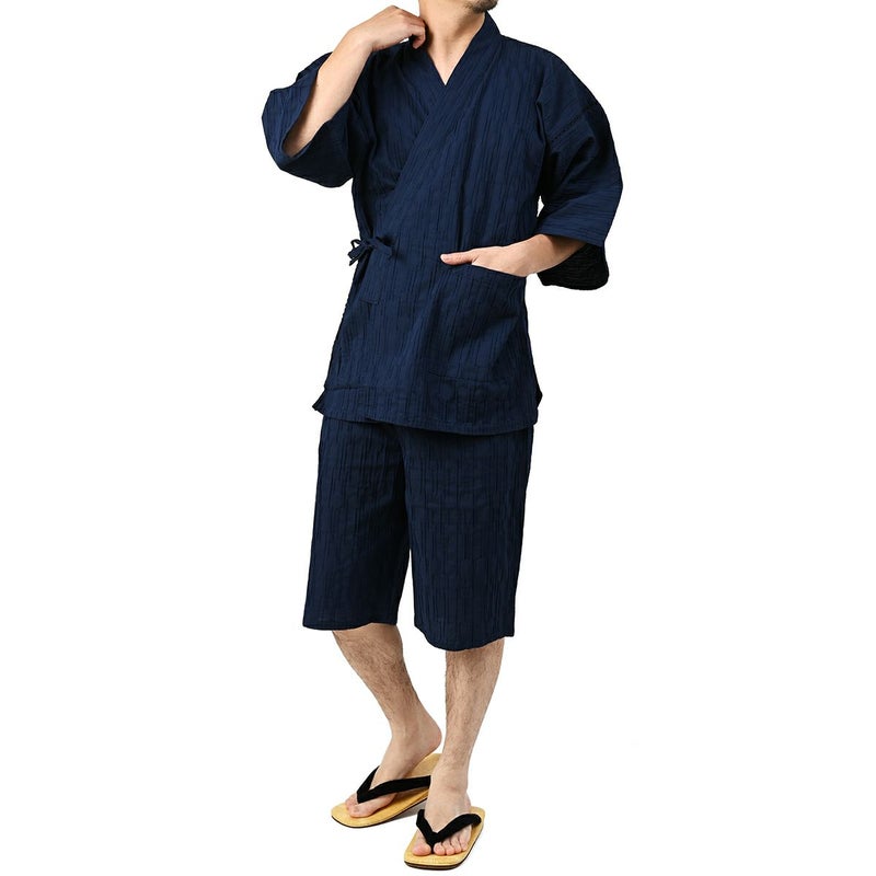 涼ちぢみ ストレッチ甚平 濃紺 Mサイズ