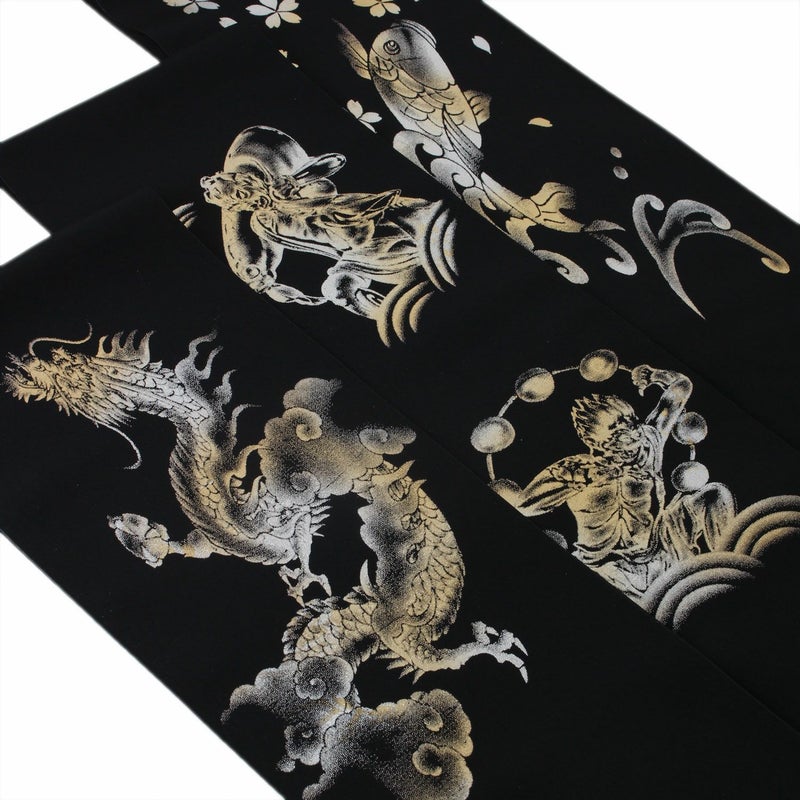 ポリエステル素材の半衿です。箔プリントの和柄が衿元を粋に演出してくれます。衿足汚れ防止の役目はもちろん、お洒落アイテムとしてお使い下さい。