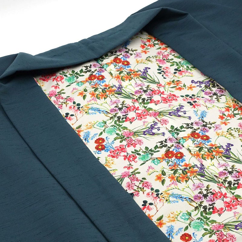 シンプルでコーディネートしやすい紬生地に鮮やかなデザインの裏地を合わせた羽織です。ふとした瞬間や着脱の際に見える裏地は粋な大人の究極のオシャレです。