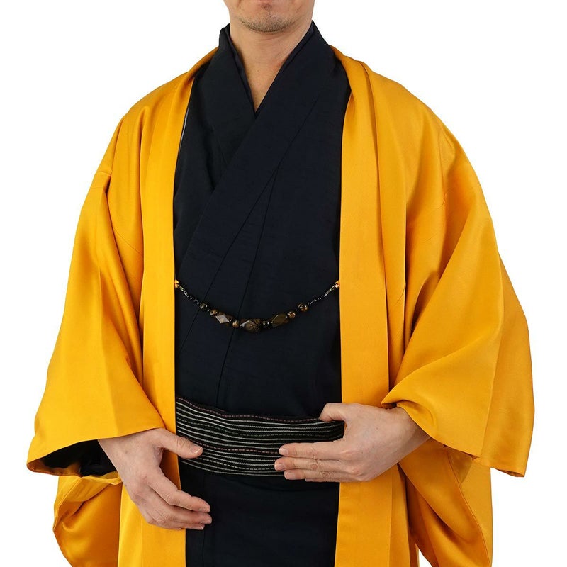 美しく高級感のある正絹特有の艶感のある男の羽織です。シンプルな無地の羽織なので普段着から舞台衣装などに人気です