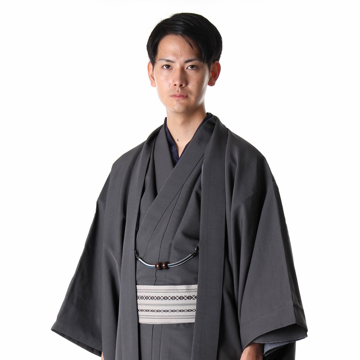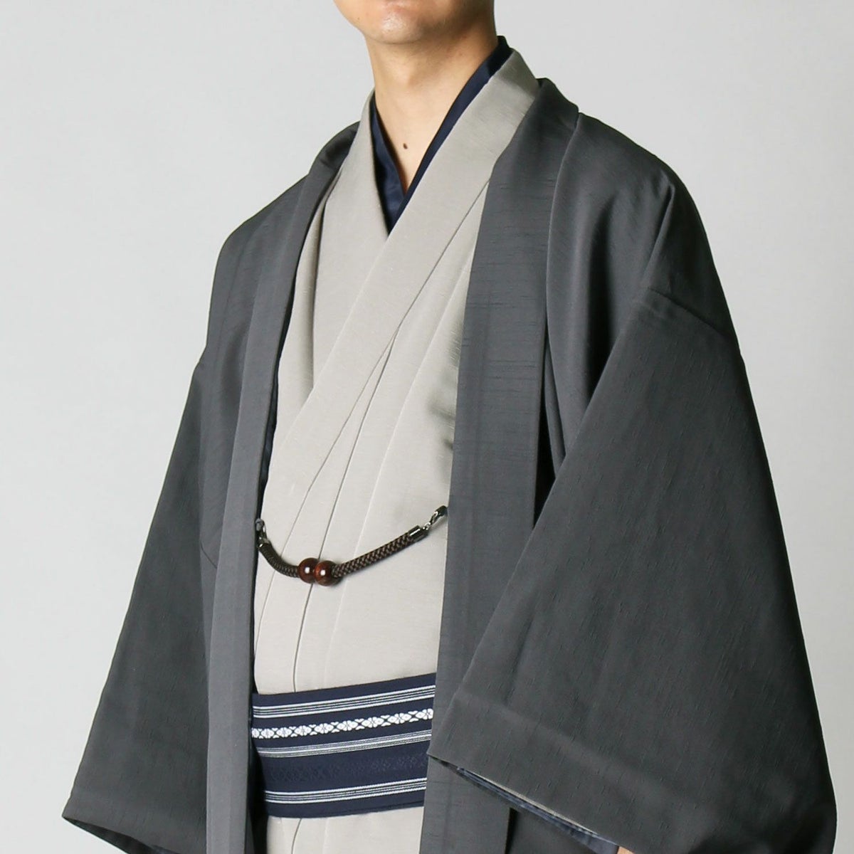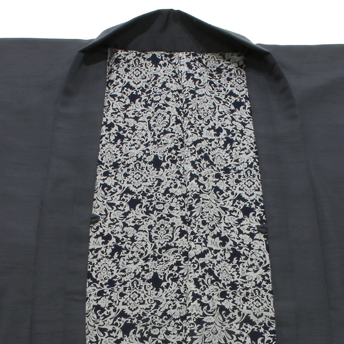 男羽織 洗える 袷 紬無地 濃グレー エスニック風 (7662)