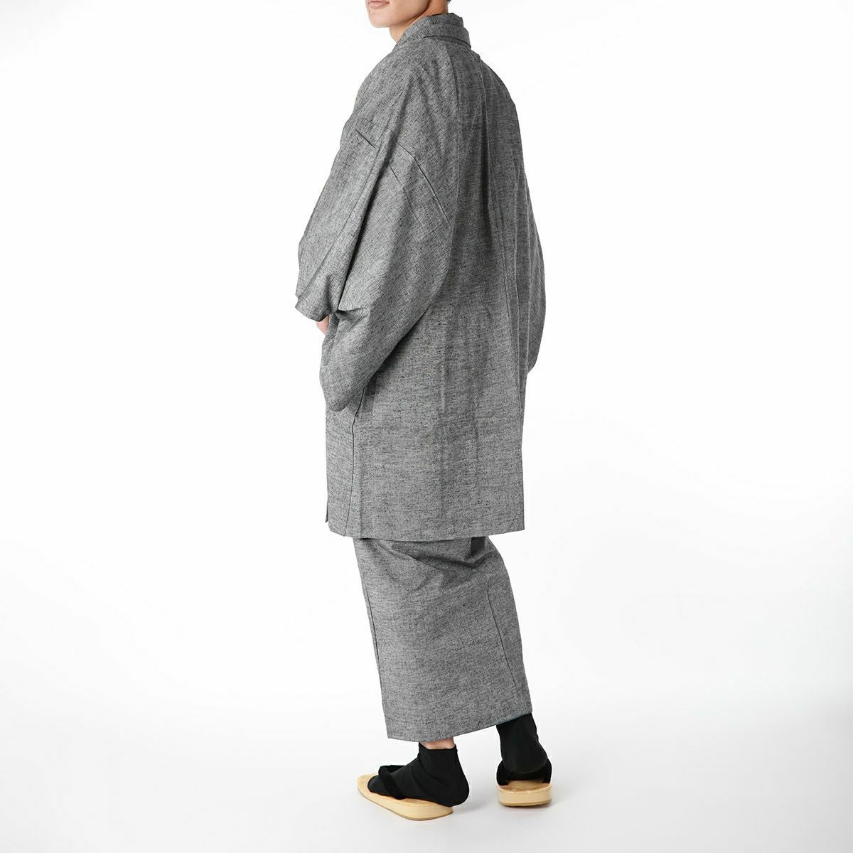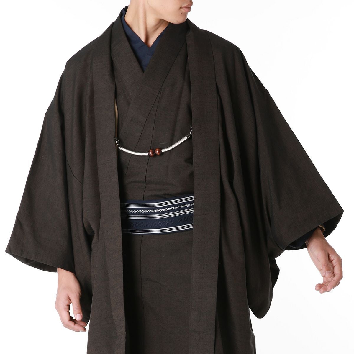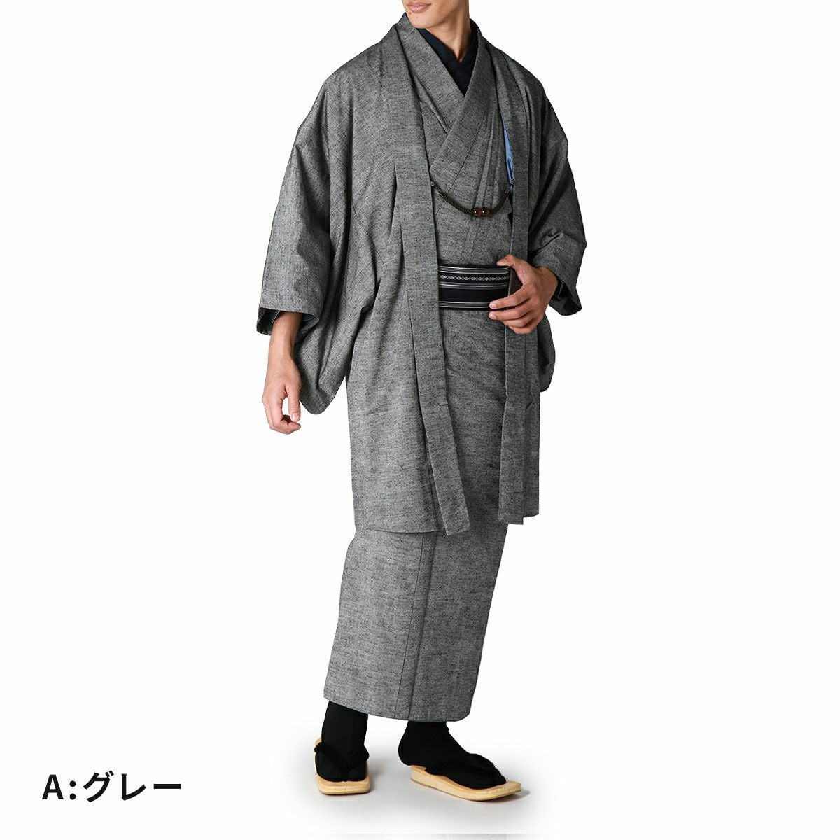 男羽織 洗える 袷 紬無地 濃グレー エスニック風 (7662)