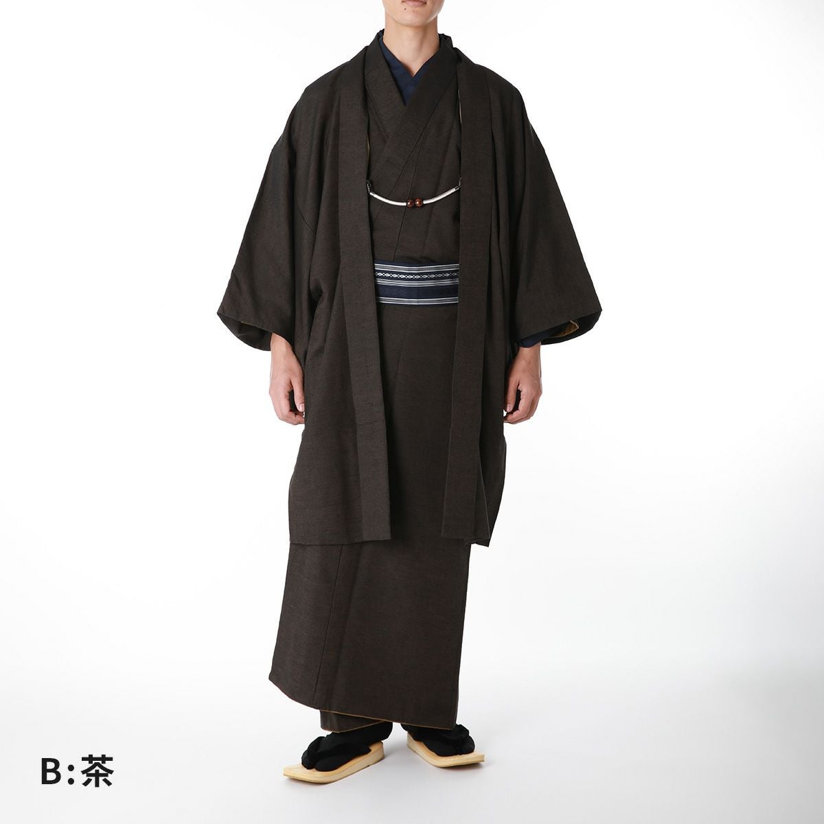男着物と羽織の2点セット 正絹 信州紬 網代 薄茶B 仕立て代込