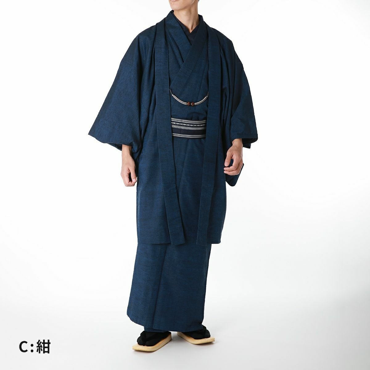 男着物3点セット 洗える着物 紬 黒紺 3L~5L(春・秋・冬)
