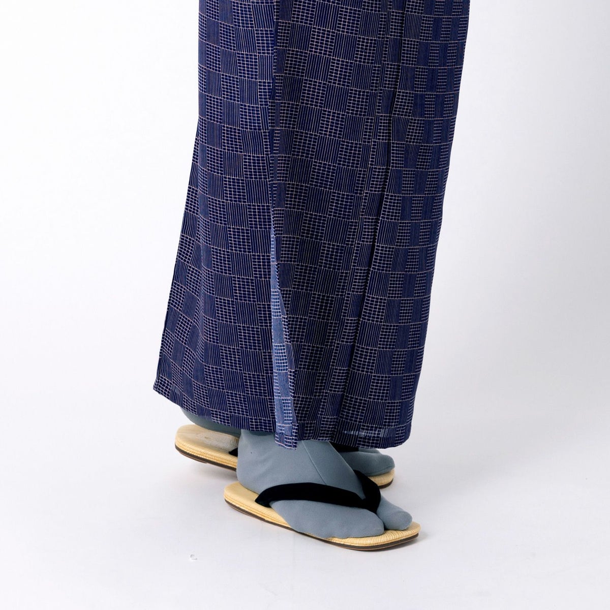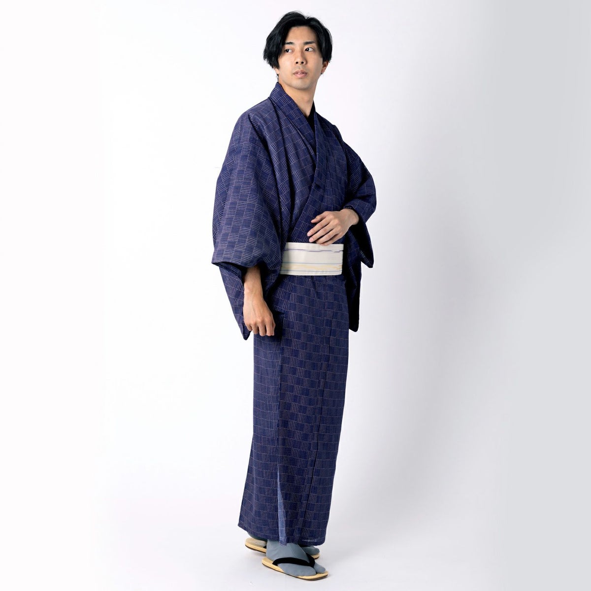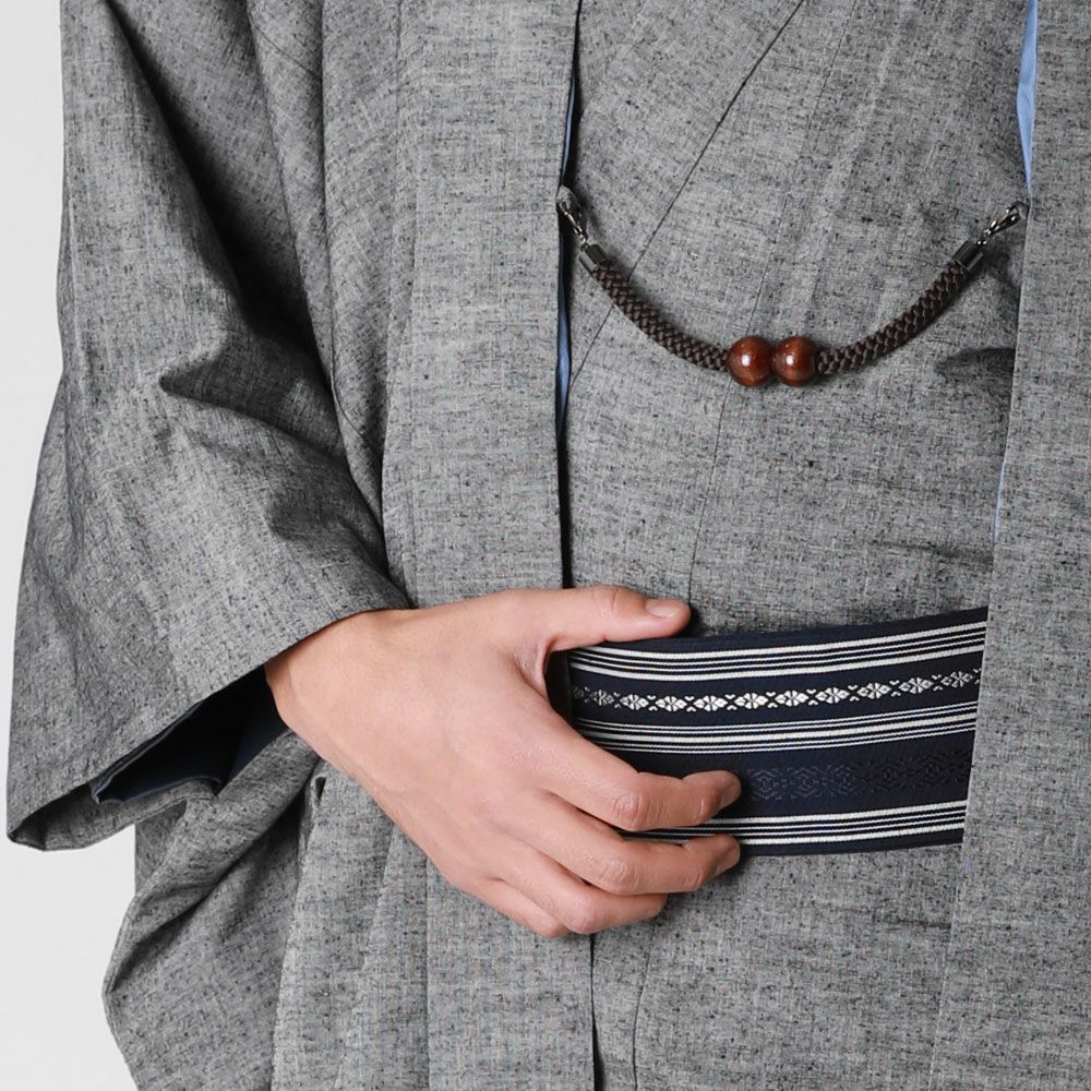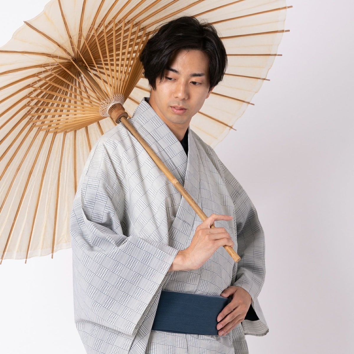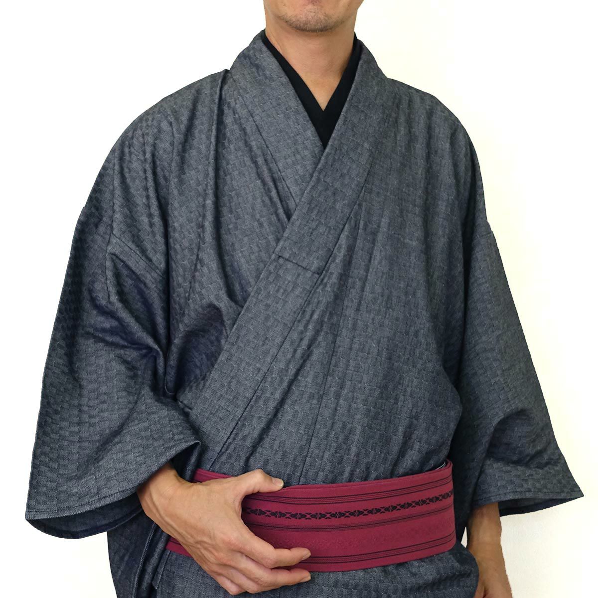 デニム着物 岡山デニム メンズ 単衣 格子柄 グレー 単品