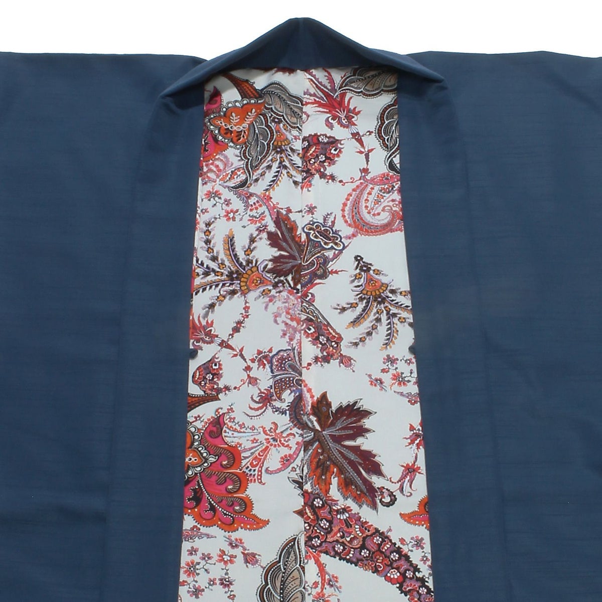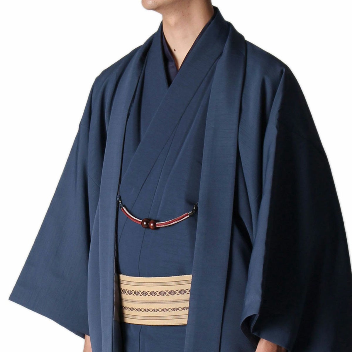 男羽織 洗える 袷 紬無地 紺 ペイズリー 単品