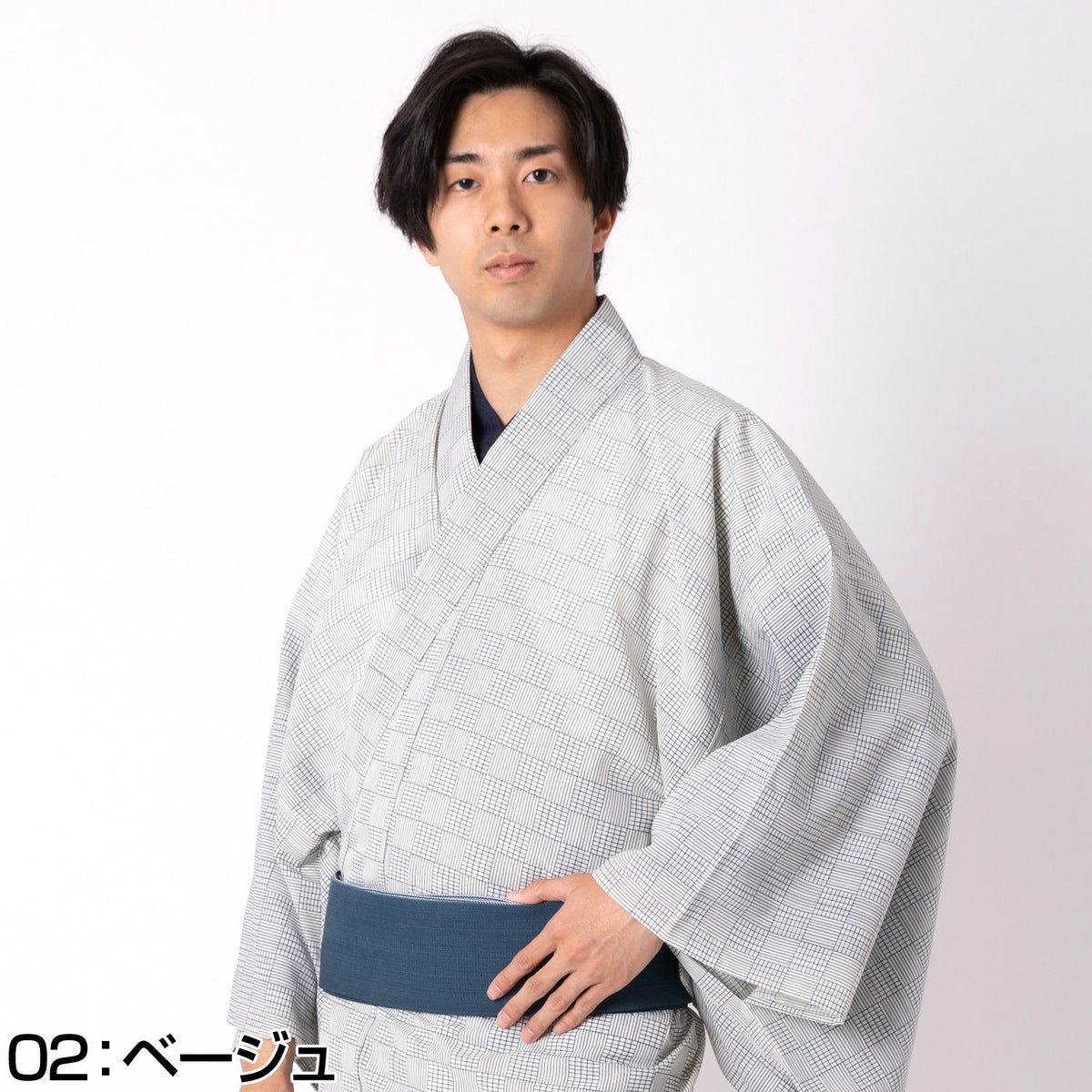 メンズ浴衣 単品 浜松浴衣 綿麻 碁盤格子 焦げ茶 167cm前後対応