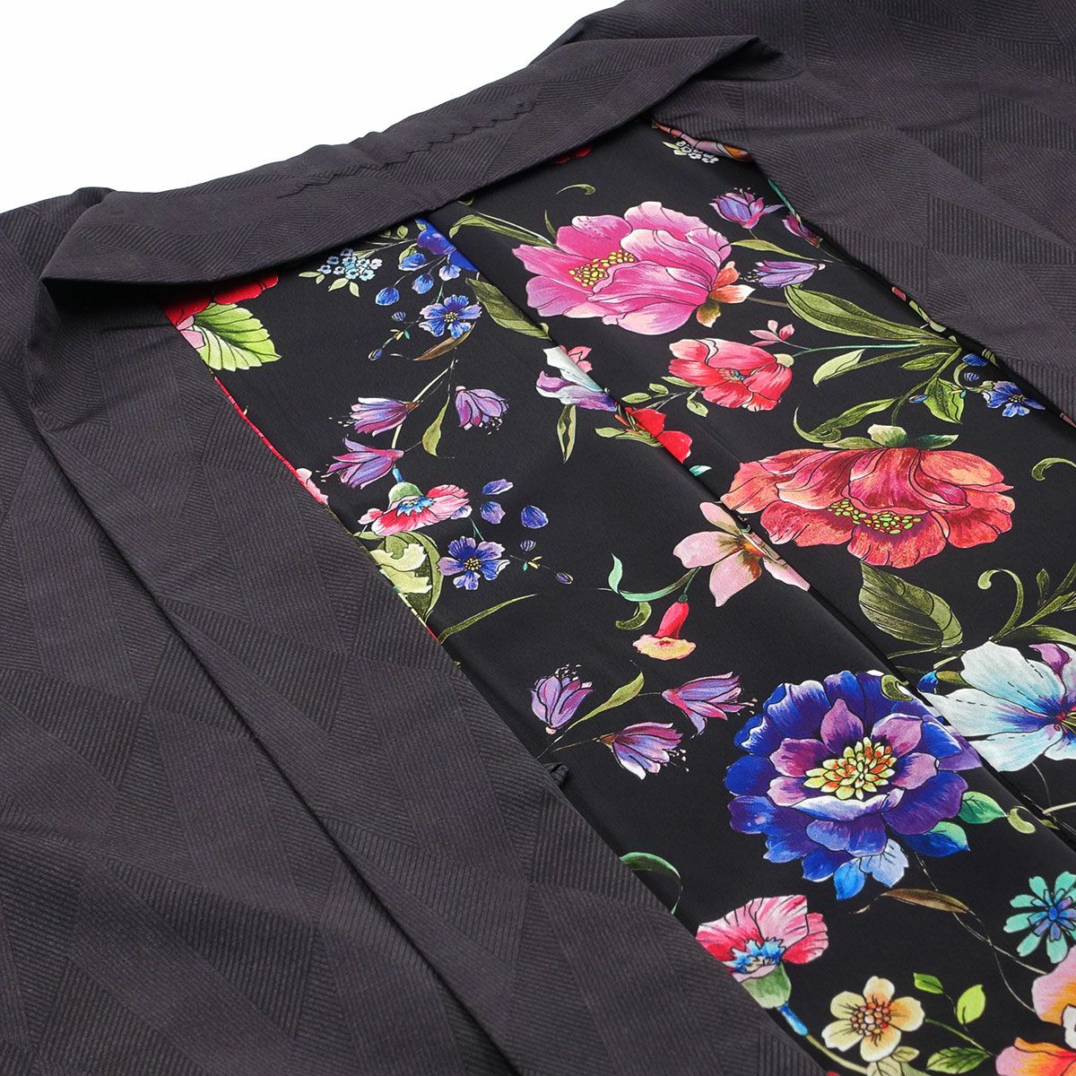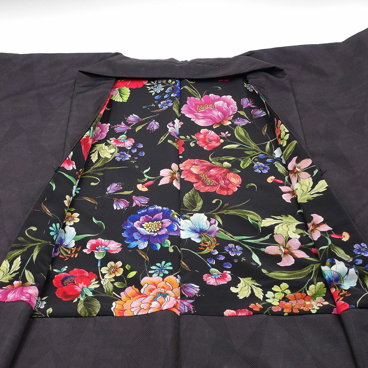 男羽織 洗える 袷 幾何学模様 濃グレー 花柄 単品
