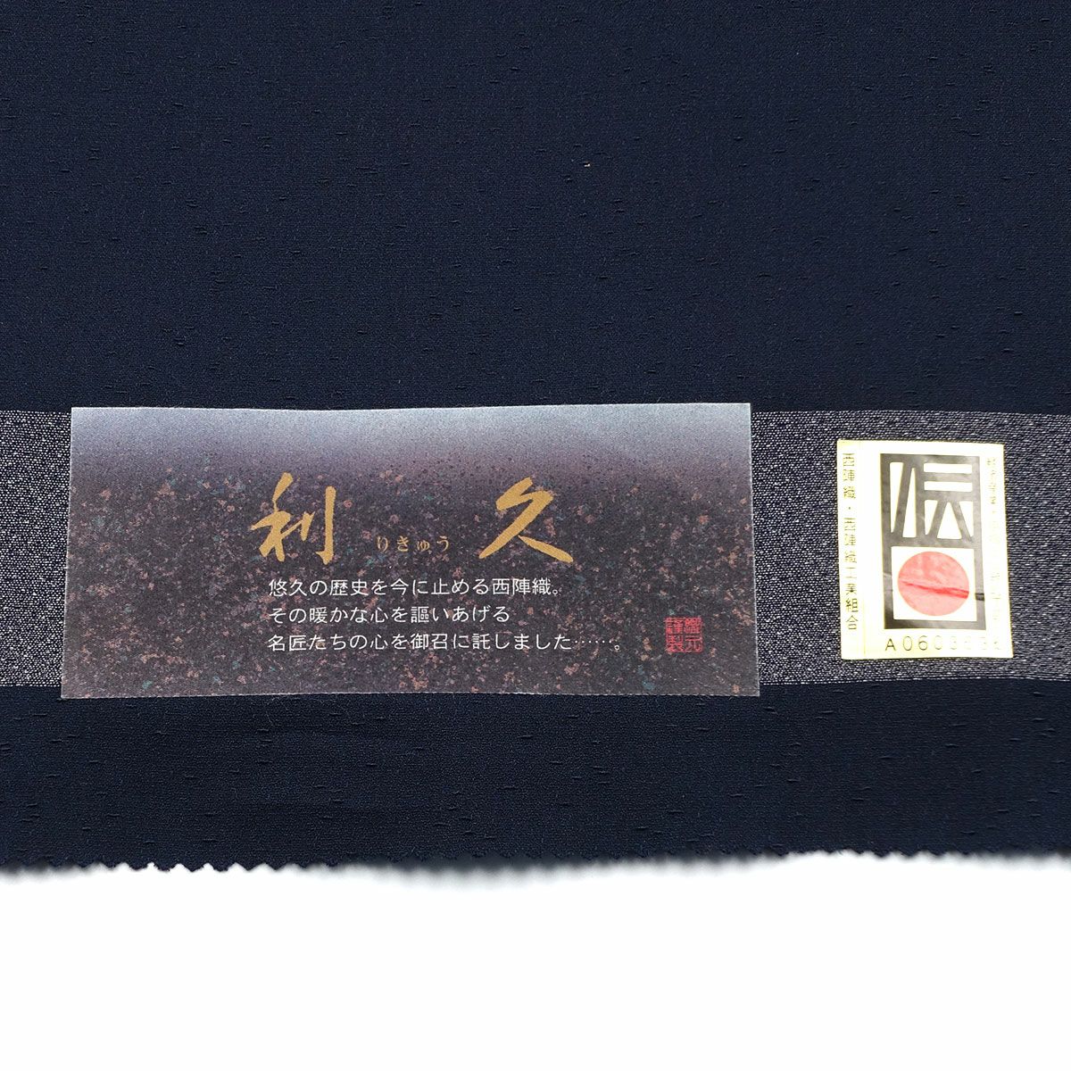 国内仕立て オーダー着物(もしくは羽織) 正絹 お召し 西陣織 利久 濃紺 No1