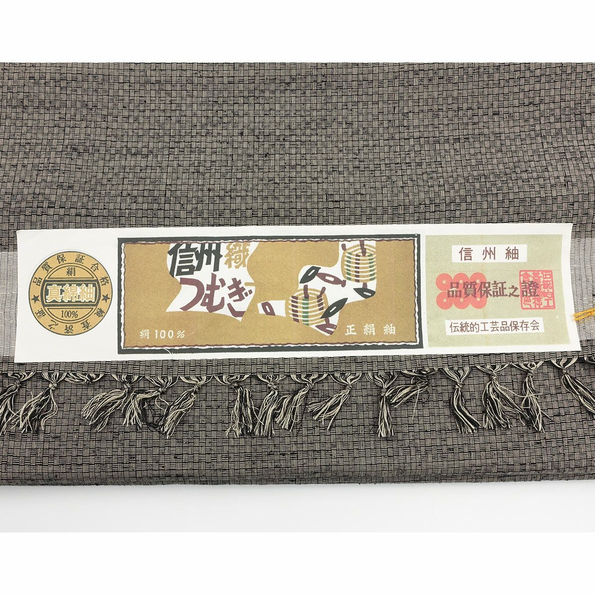 男着物と羽織の2点セット 正絹 信州紬 網代 薄茶A 仕立て代込