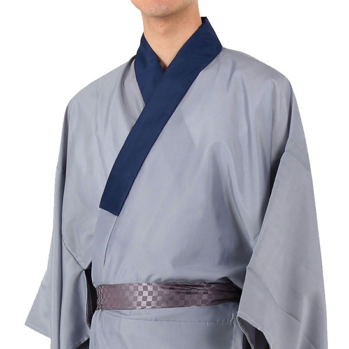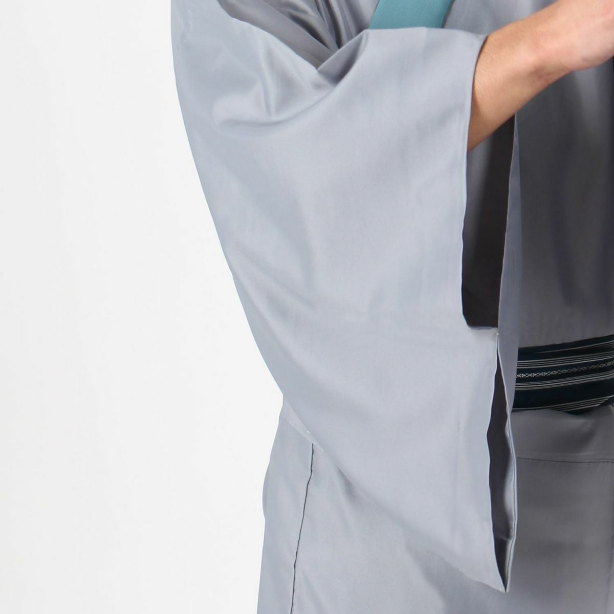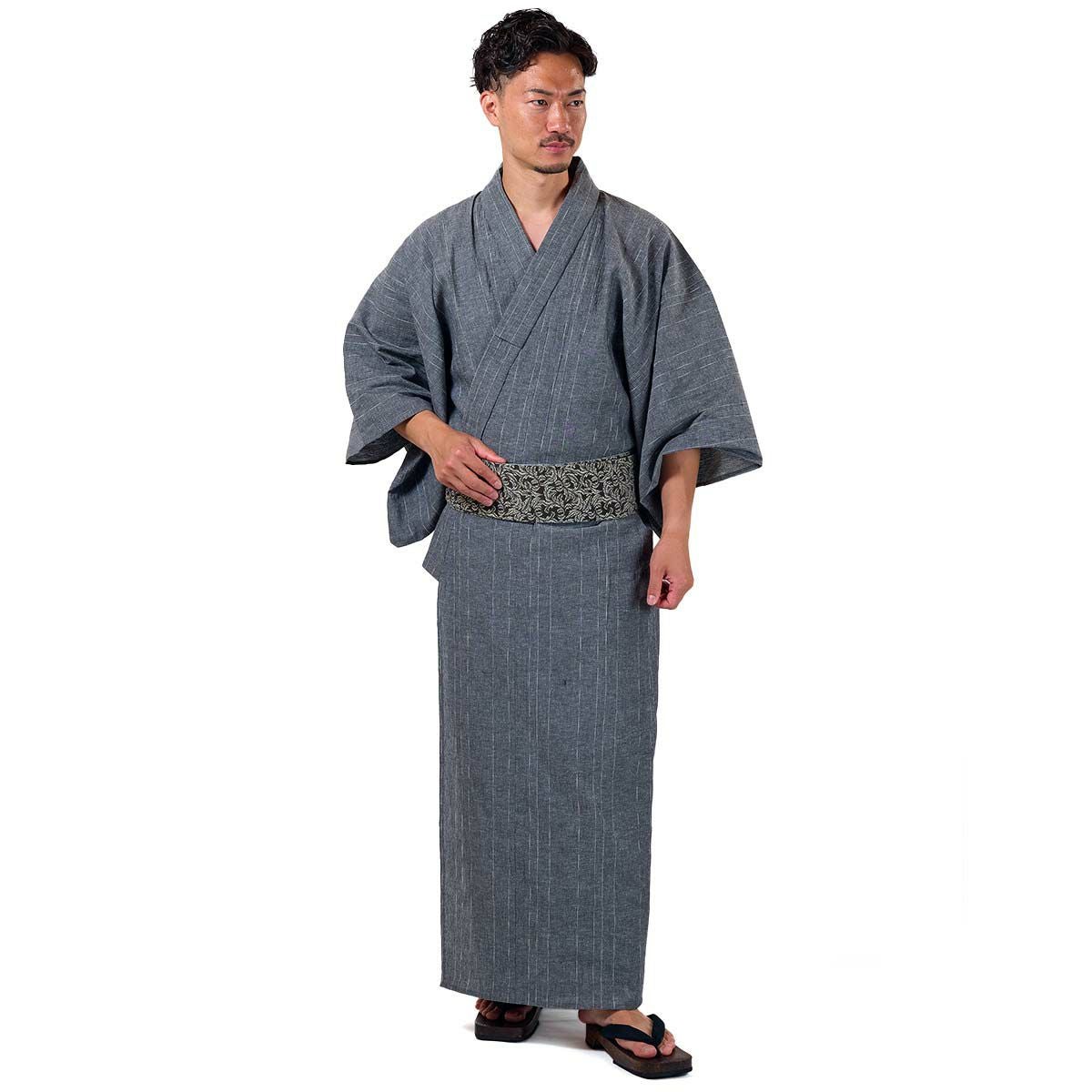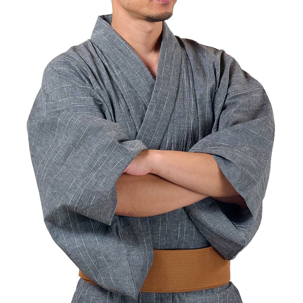 180cm前後対応 メンズ浴衣 単品 近江ちぢみ綿麻 モデル着用 グレー