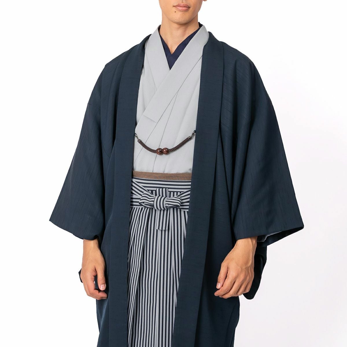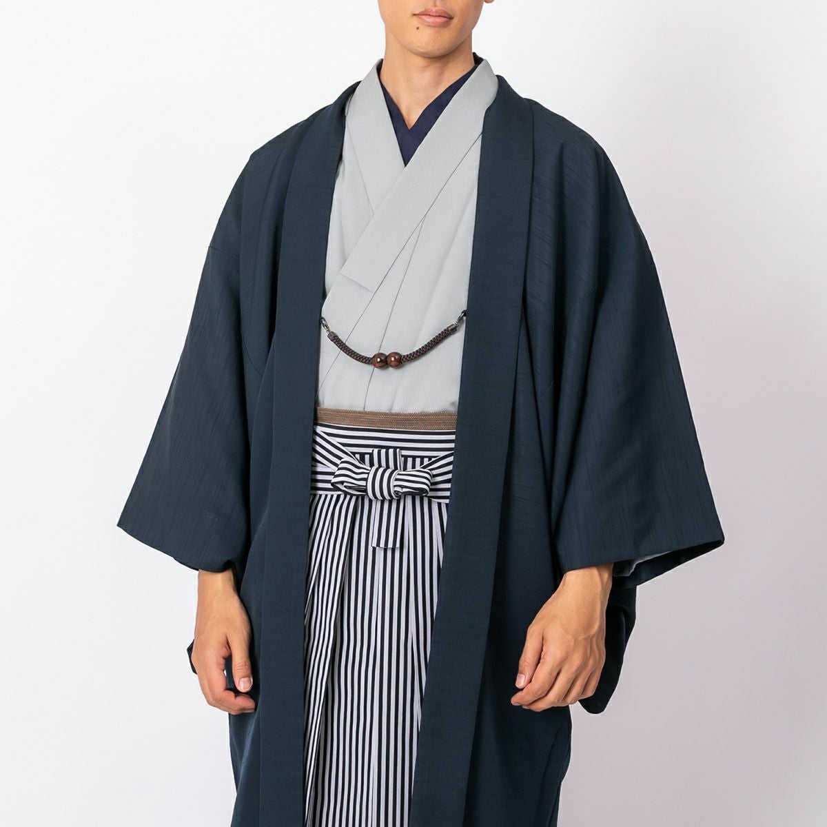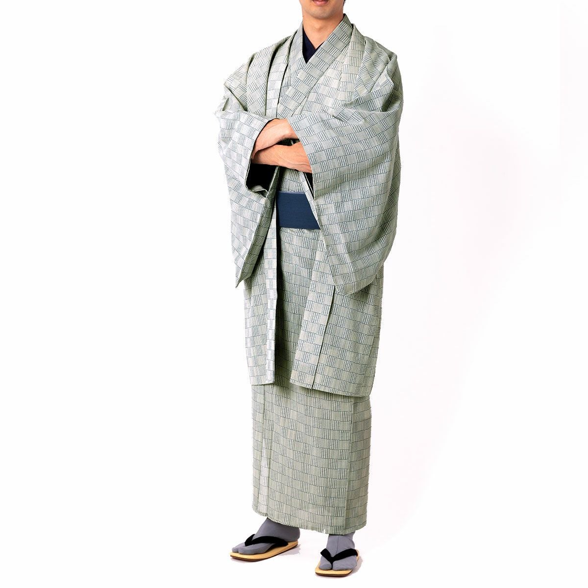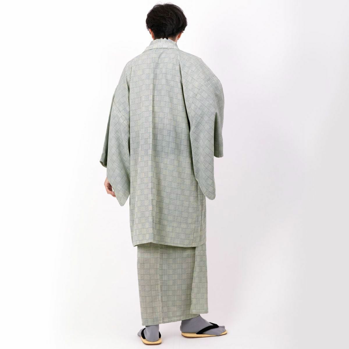 180cm前後対応 メンズ浴衣 単品 近江ちぢみ綿麻 モデル着用 グレー