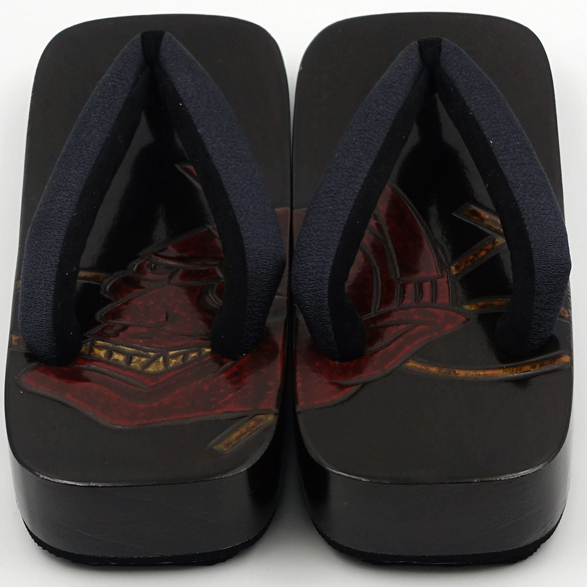 桐下駄 鎌倉彫 27cm位まで対応 板鎌 般若 濃紺