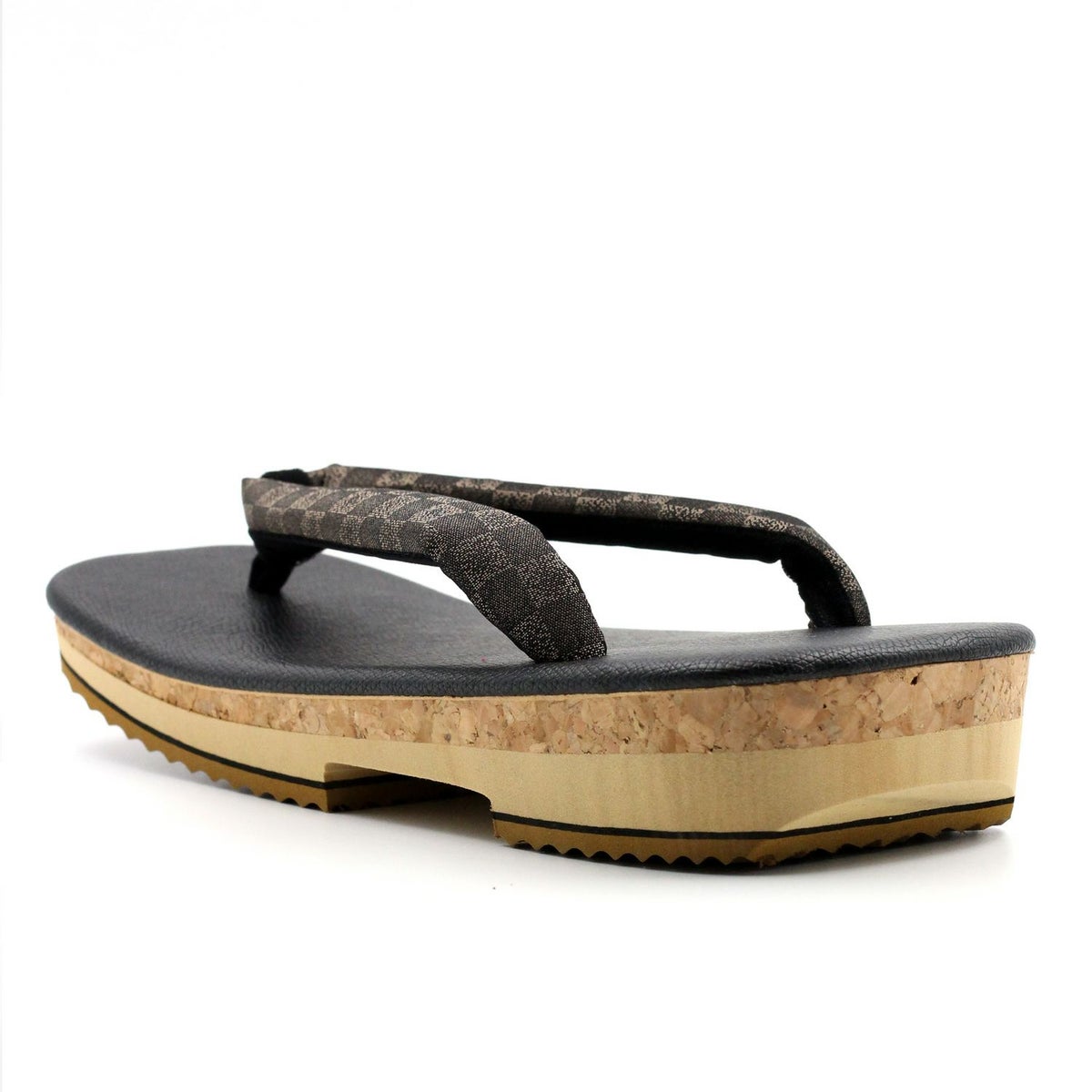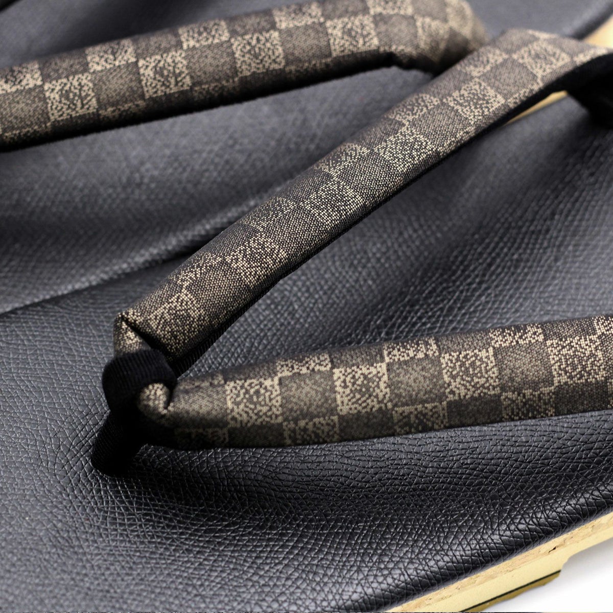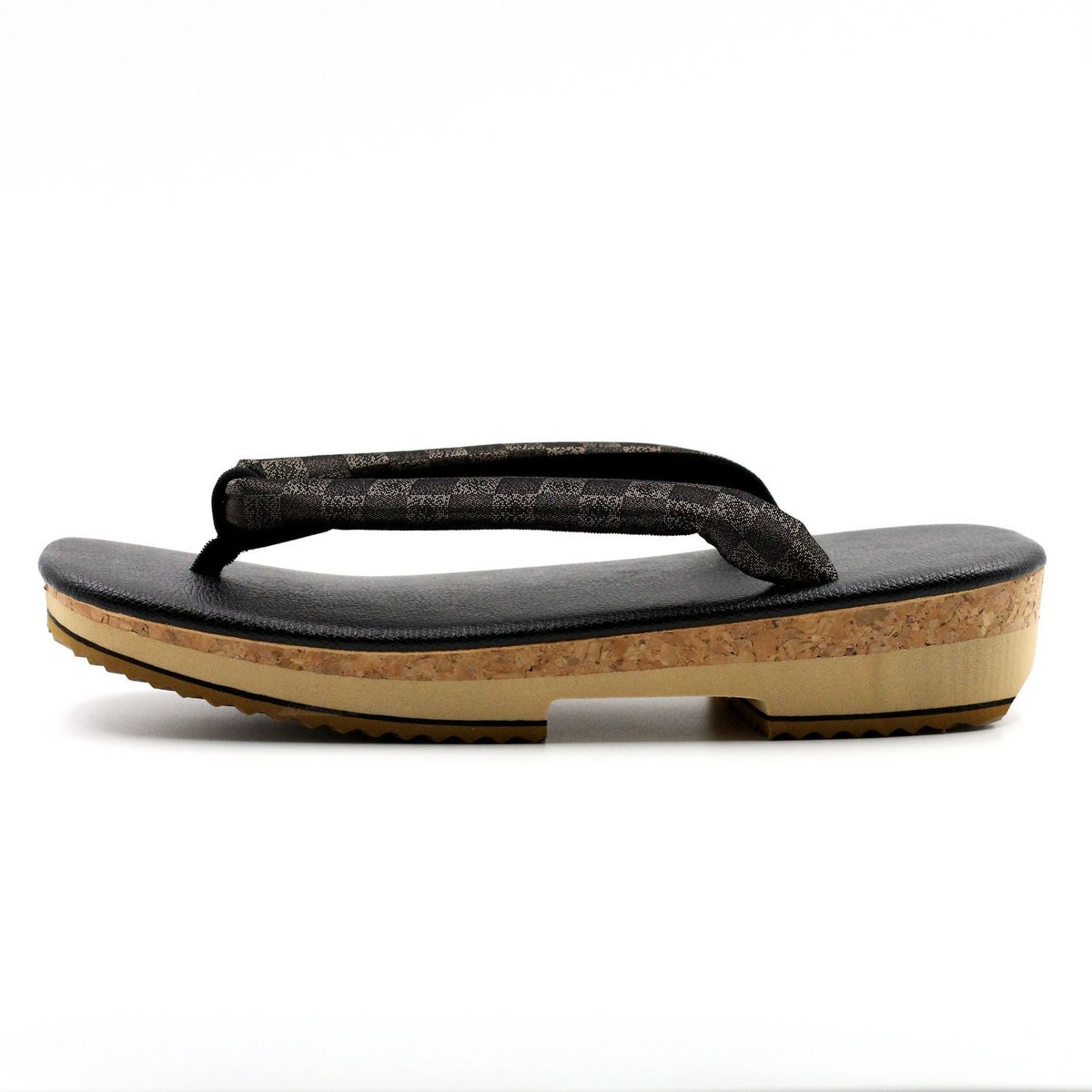 草履 黒 メンズ ブラックEVA かすり市松 茶
