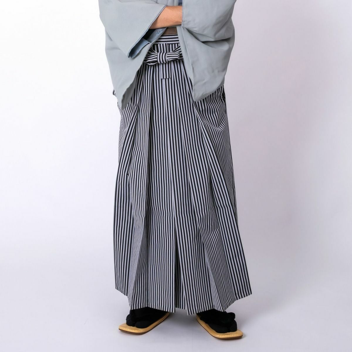 男性袴 交織縞 無双 馬乗り袴 白黒縞