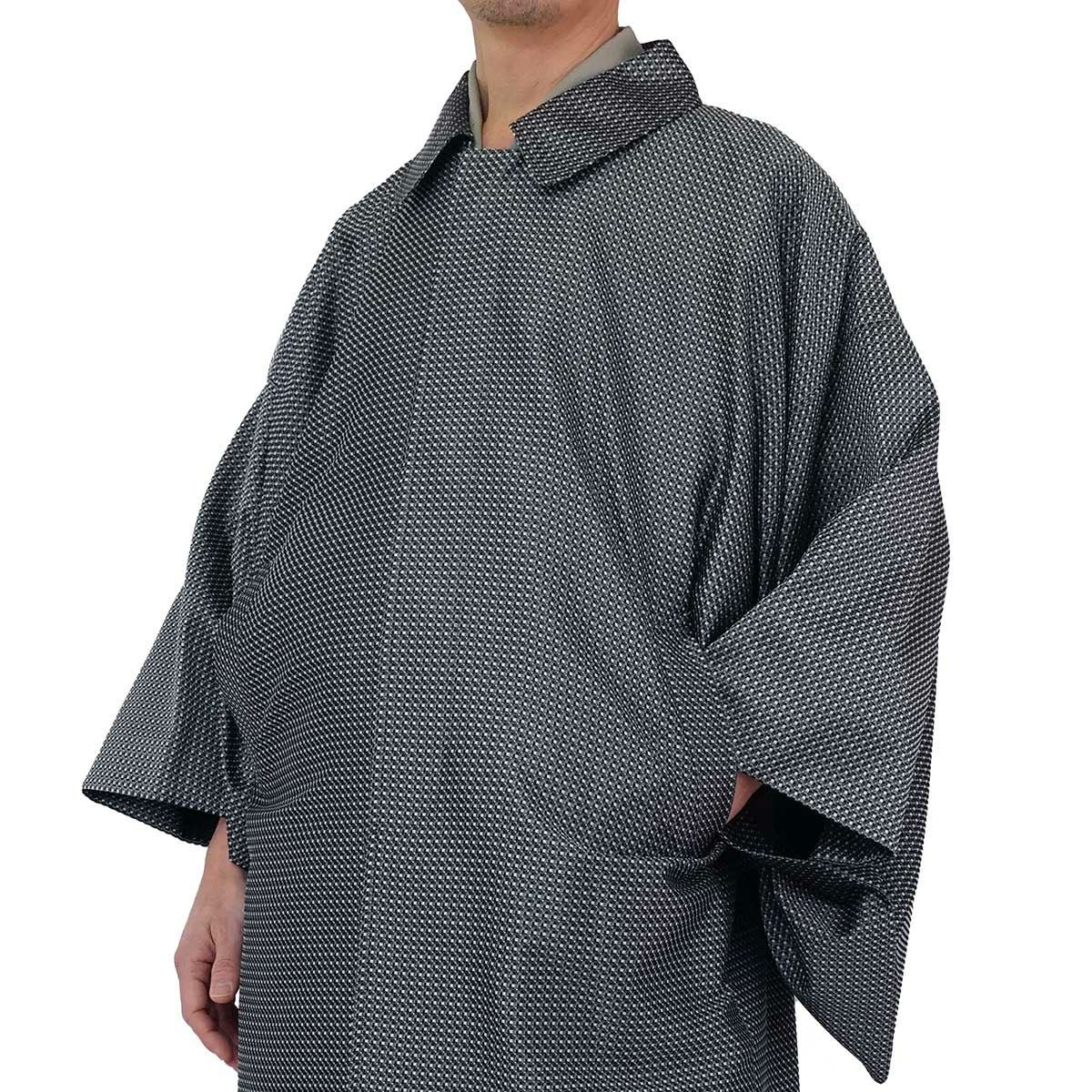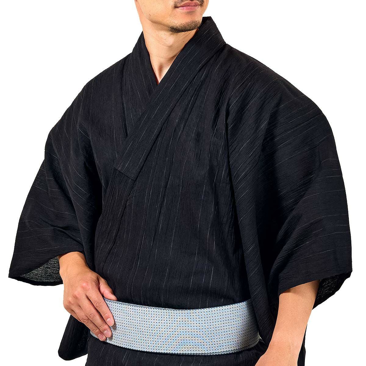 180cm前後対応 メンズ浴衣 単品 近江ちぢみ綿麻 モデル着用 黒