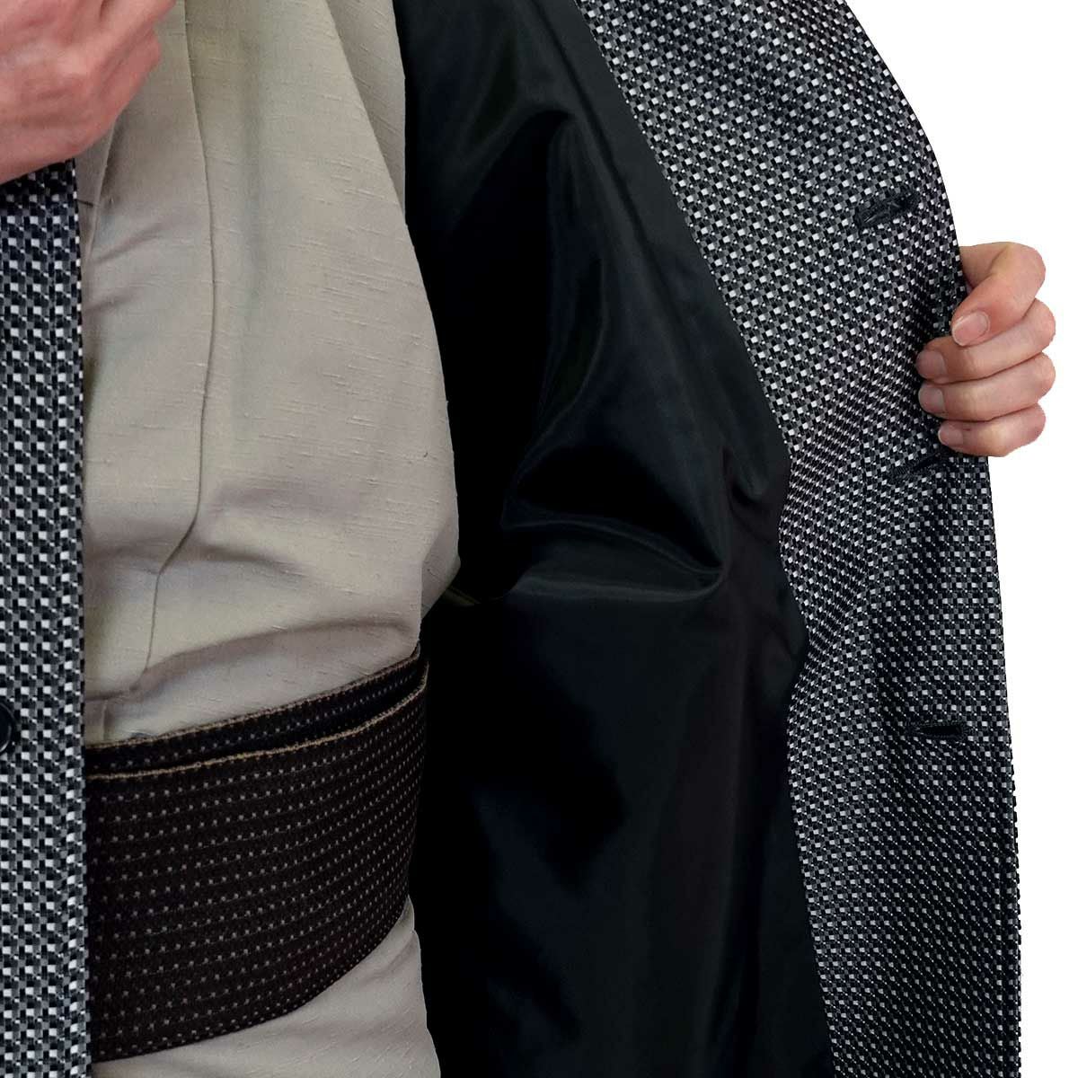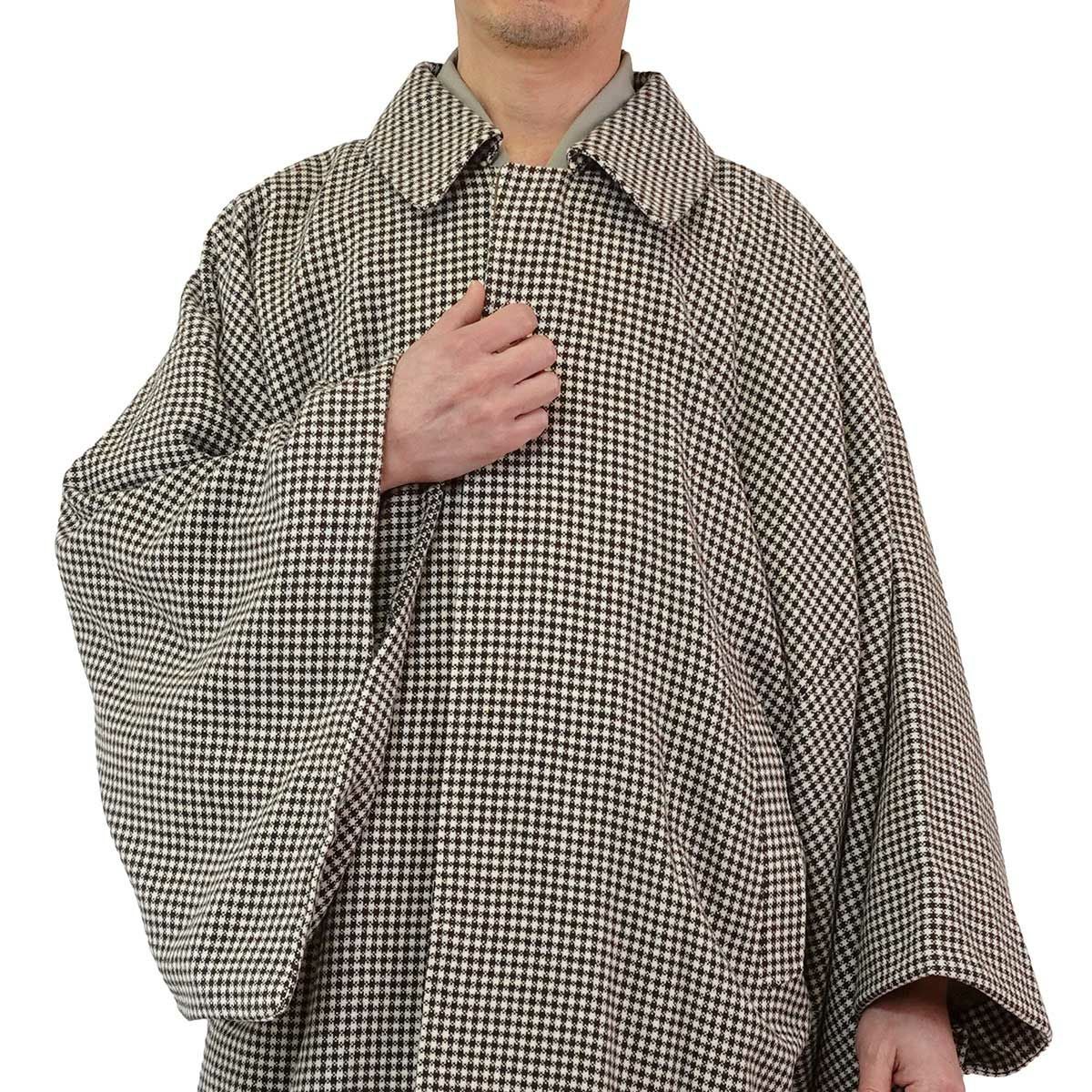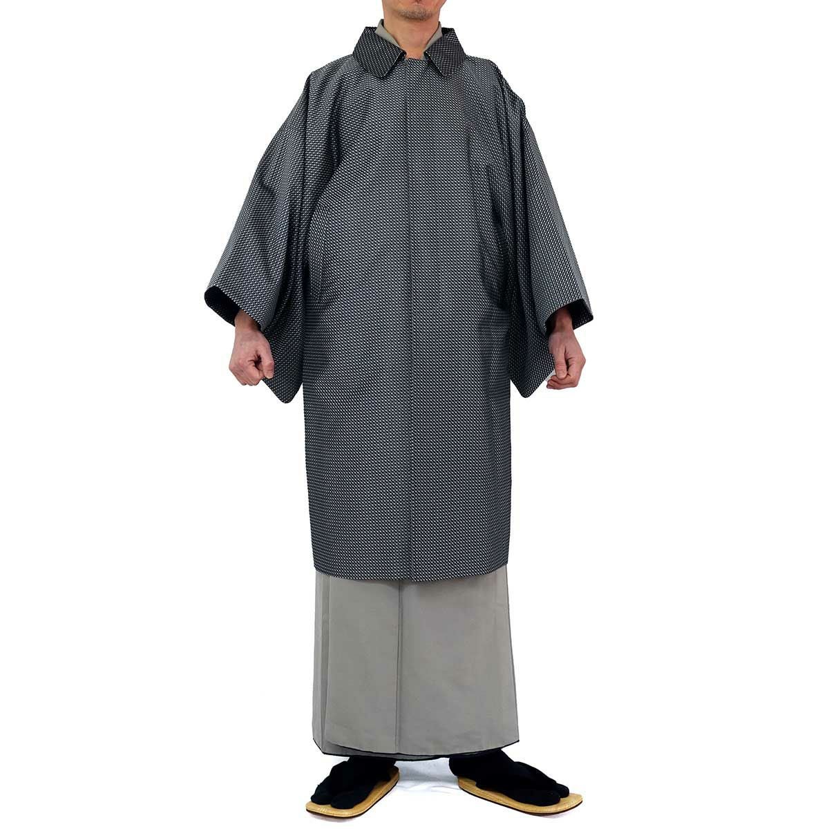 コート メンズ 角袖 微塵格子 濃グレー 日本製 170cm前後対応