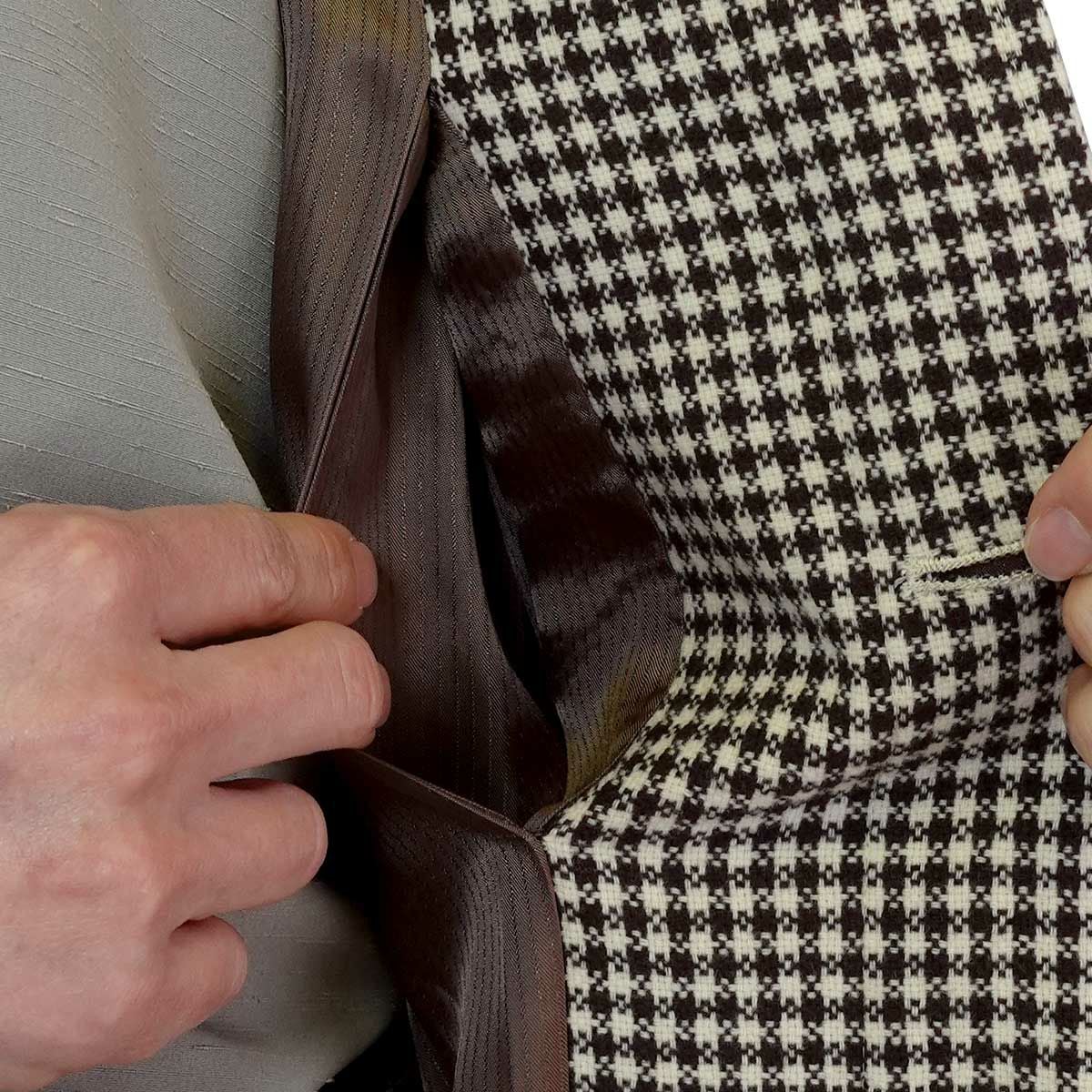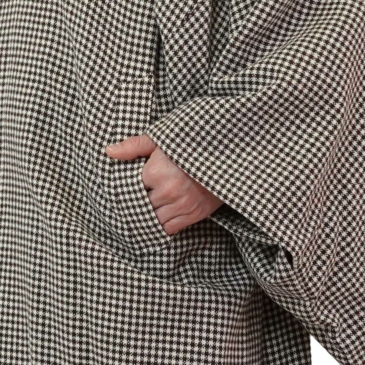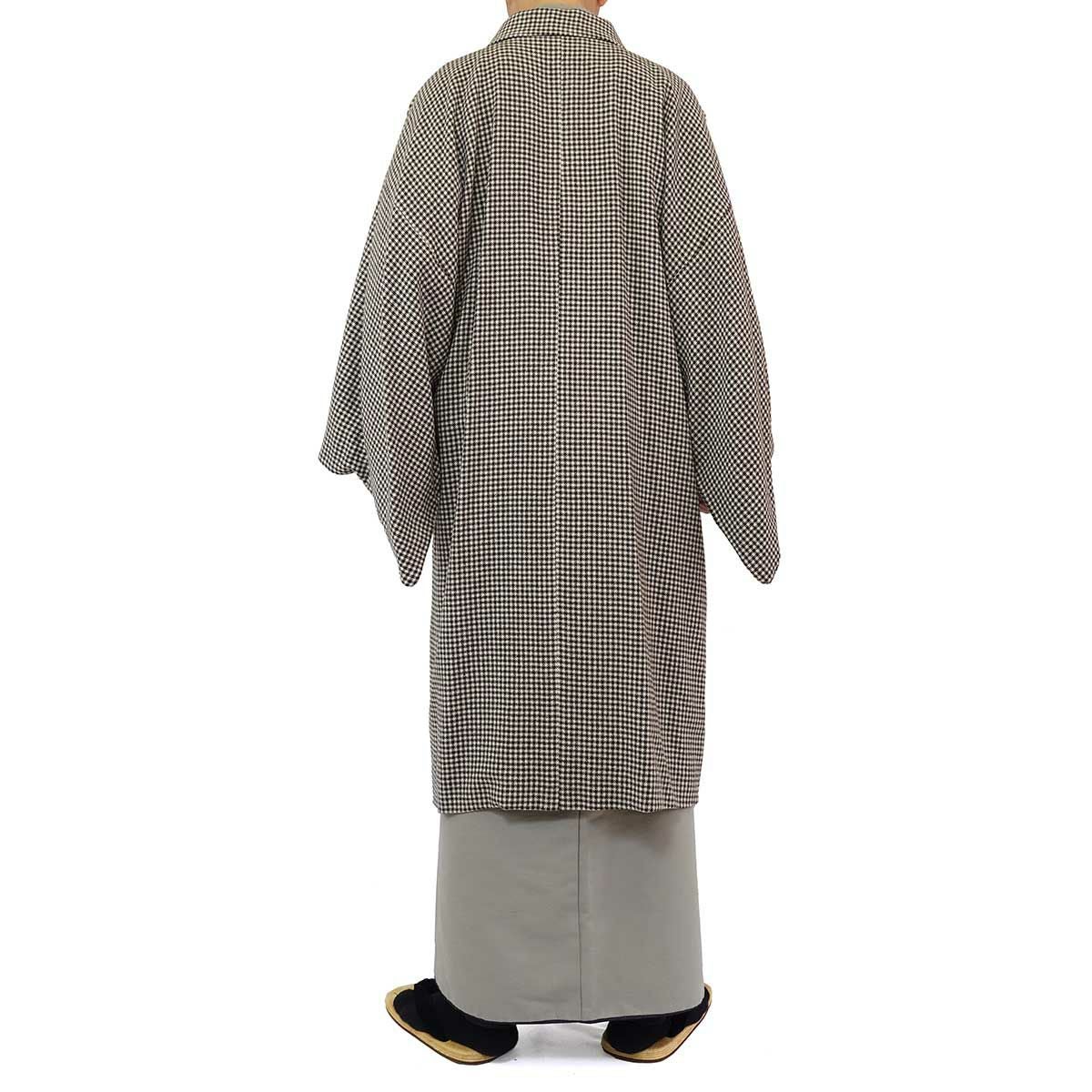 コート メンズ 角袖 ウール 微塵格子 茶 日本製 170cm~175cm前後対応