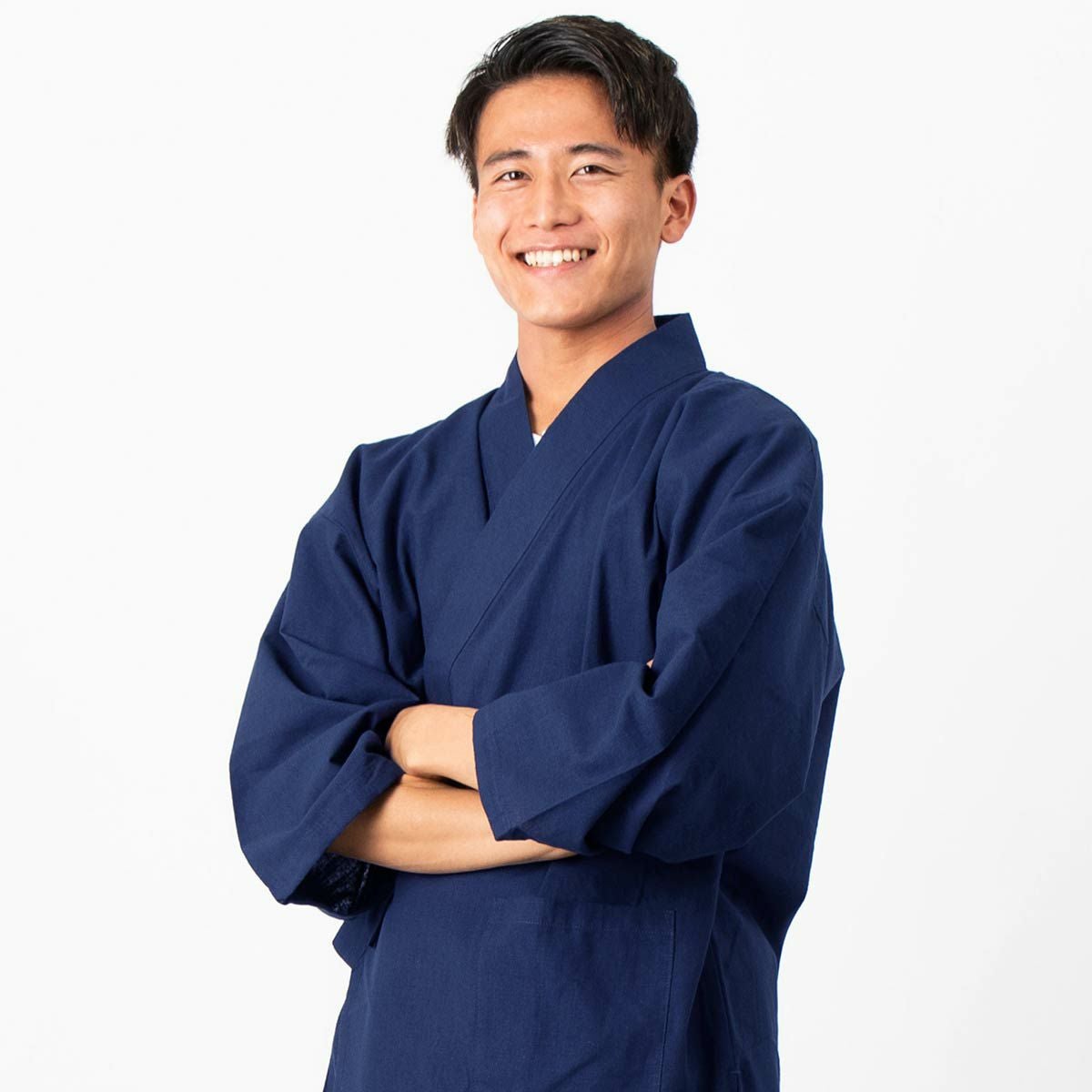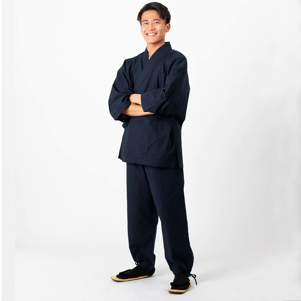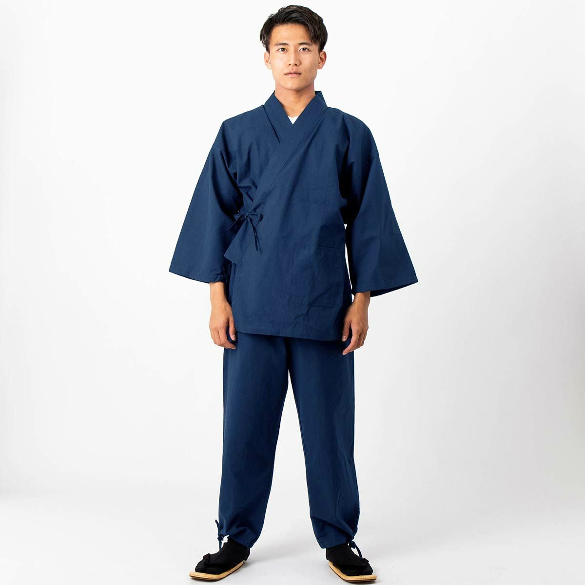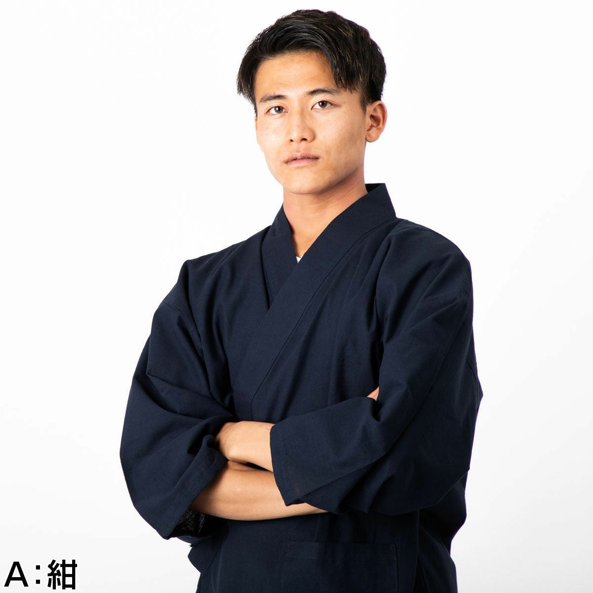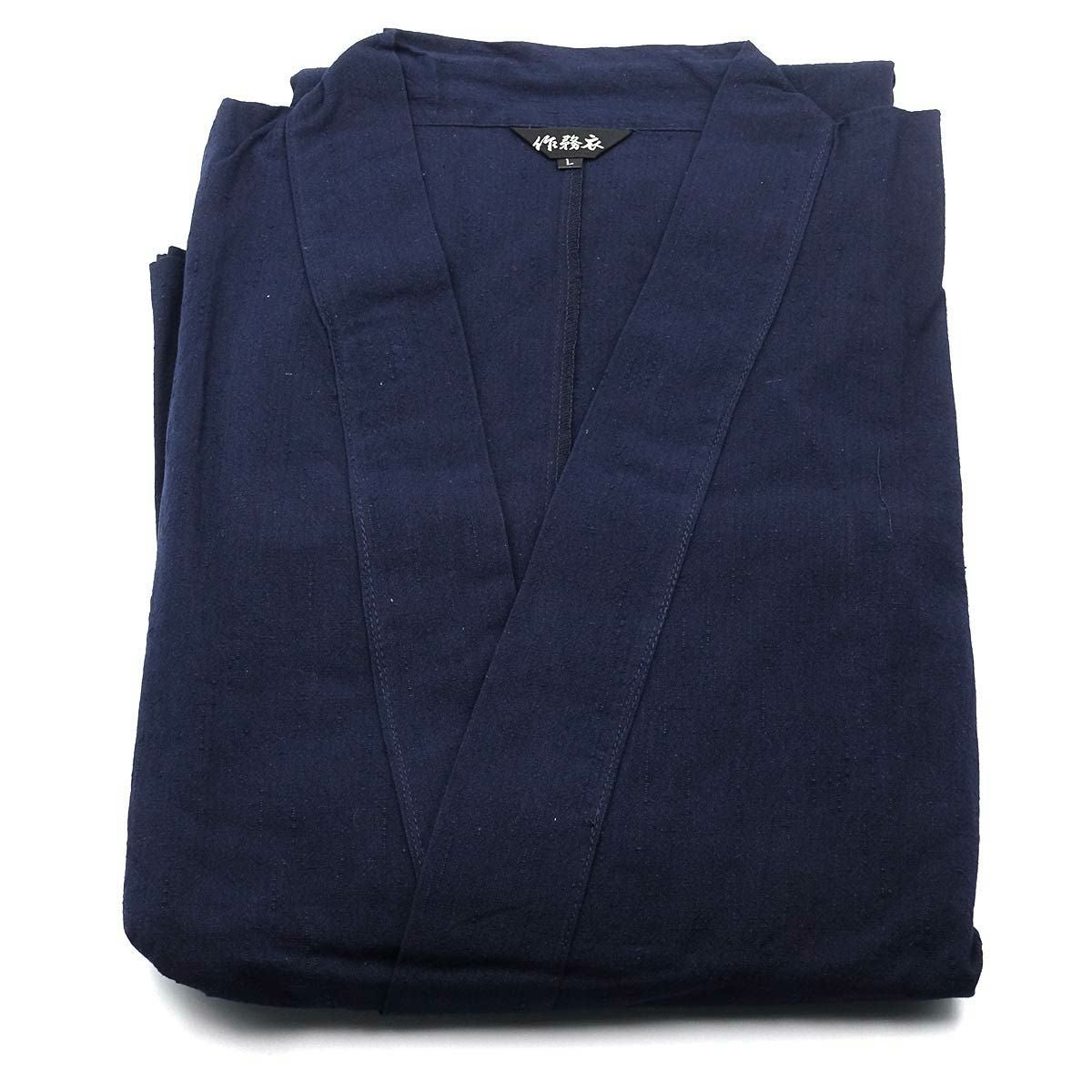 作務衣 男物 綿紬 濃紺 Lサイズ (8005)