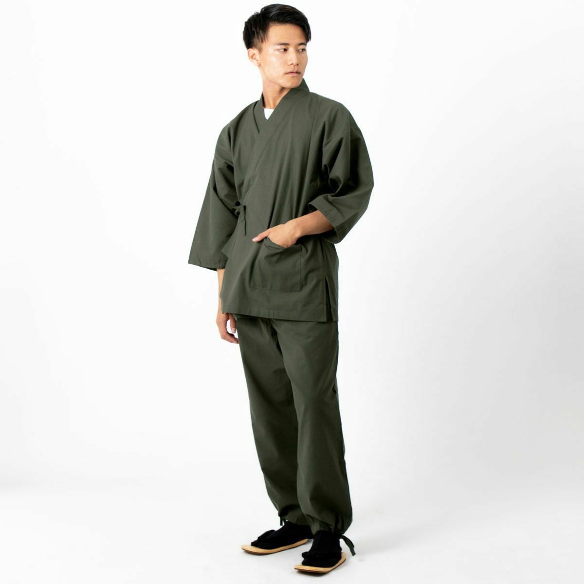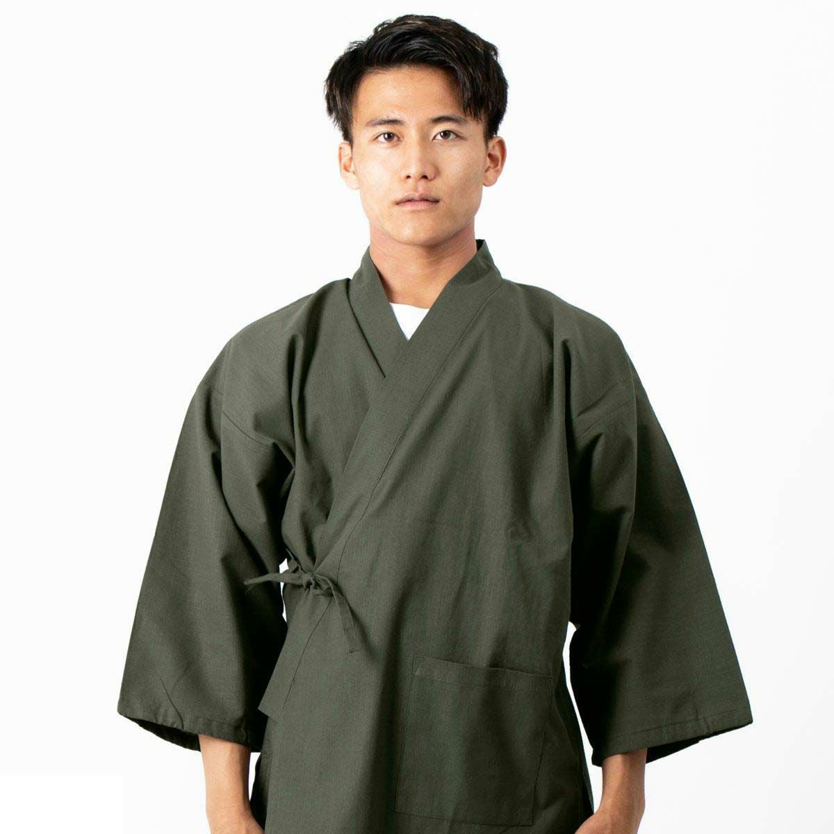 作務衣 男物 綿紬 カーキ