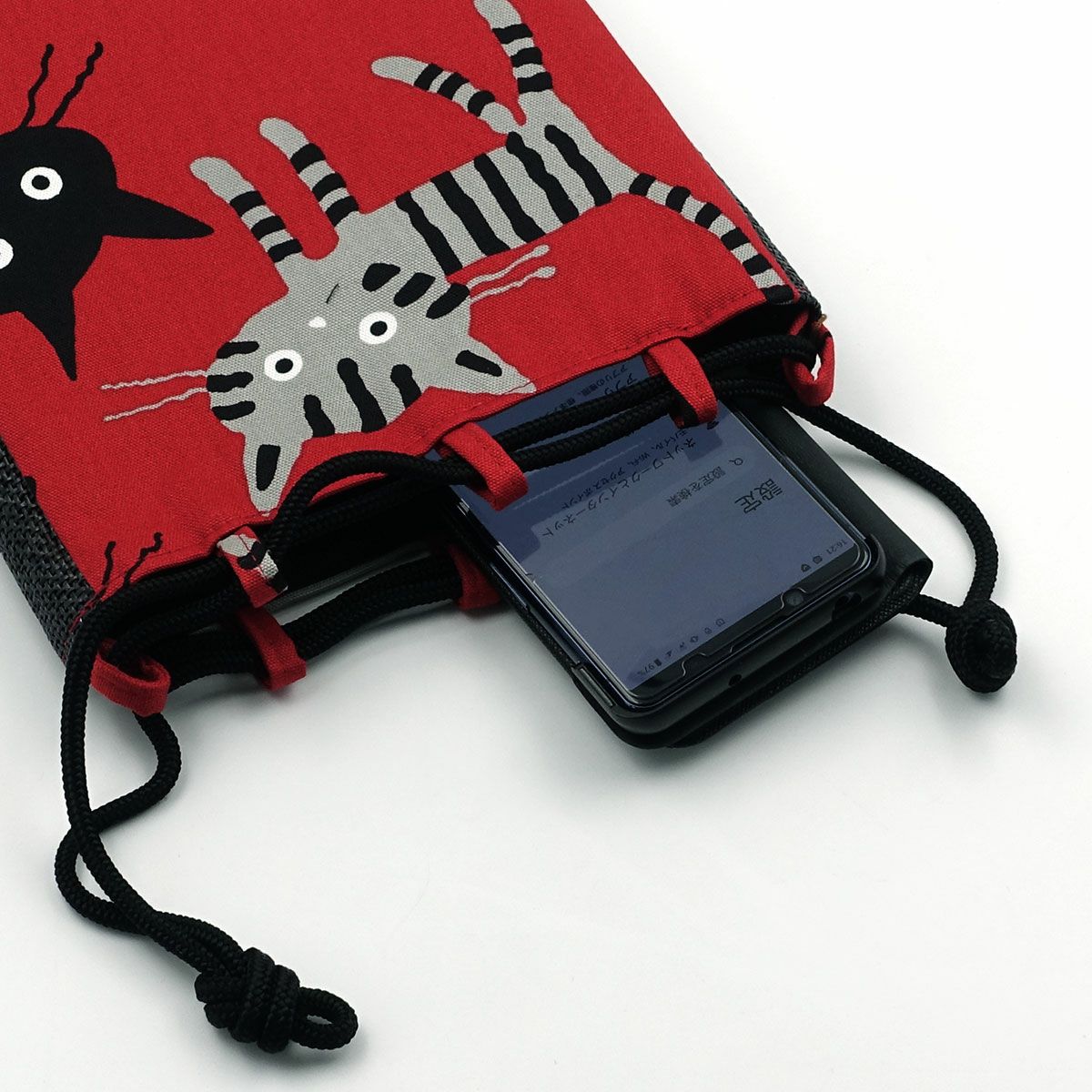 信玄袋 マチ付き 猫 日本製