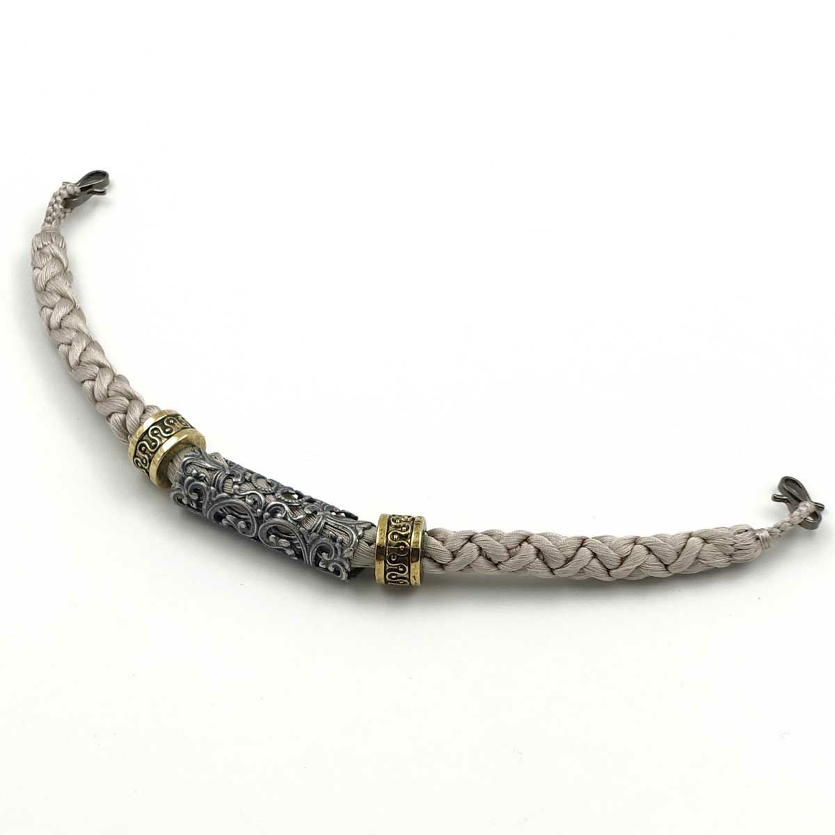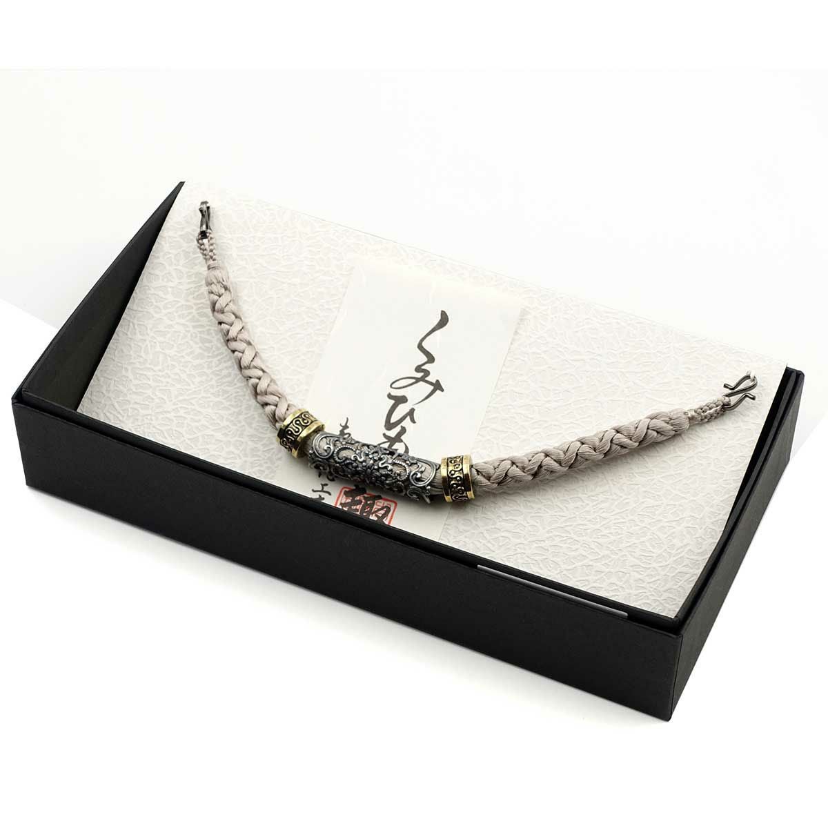 羽織紐 正絹 手組紐 平打ち シルバー