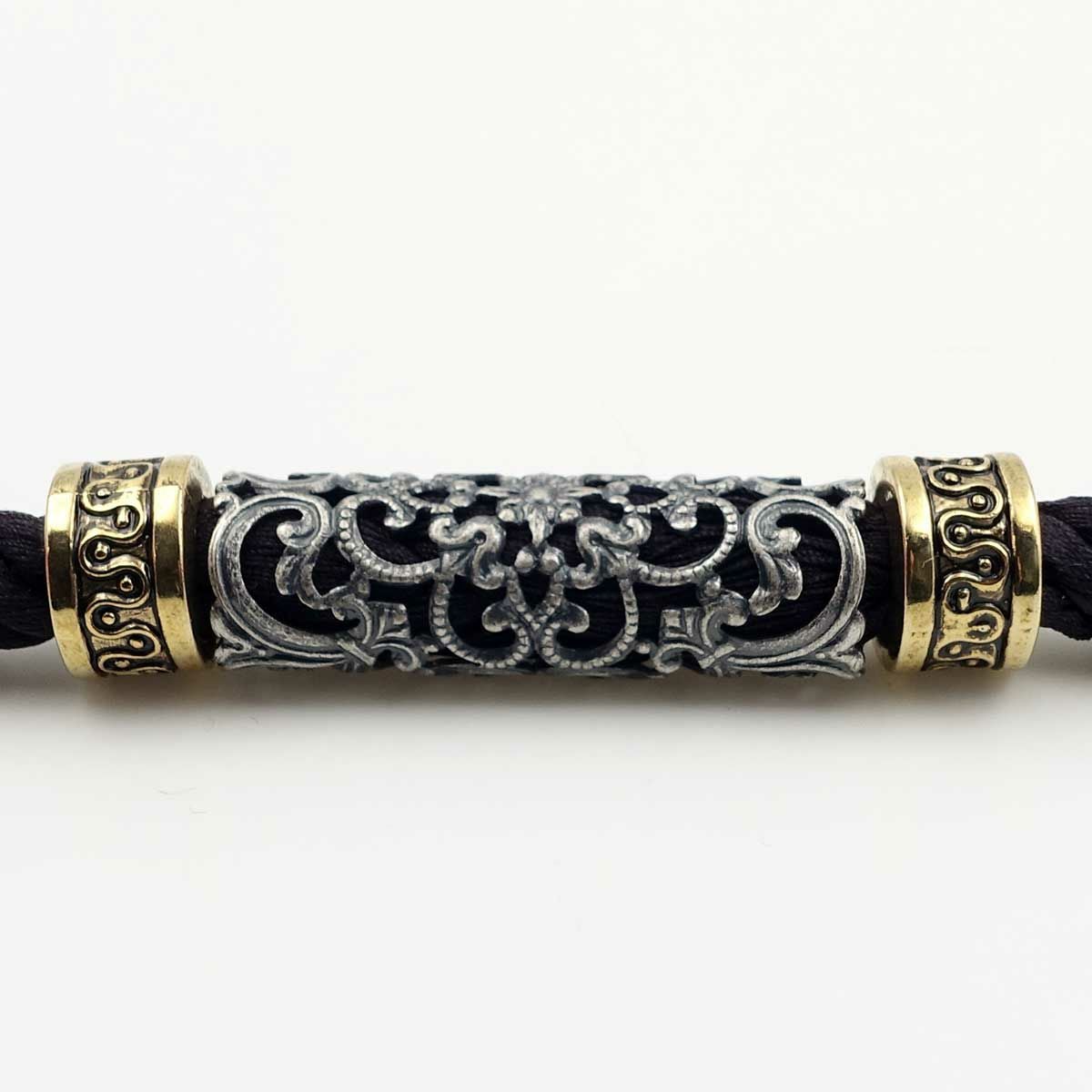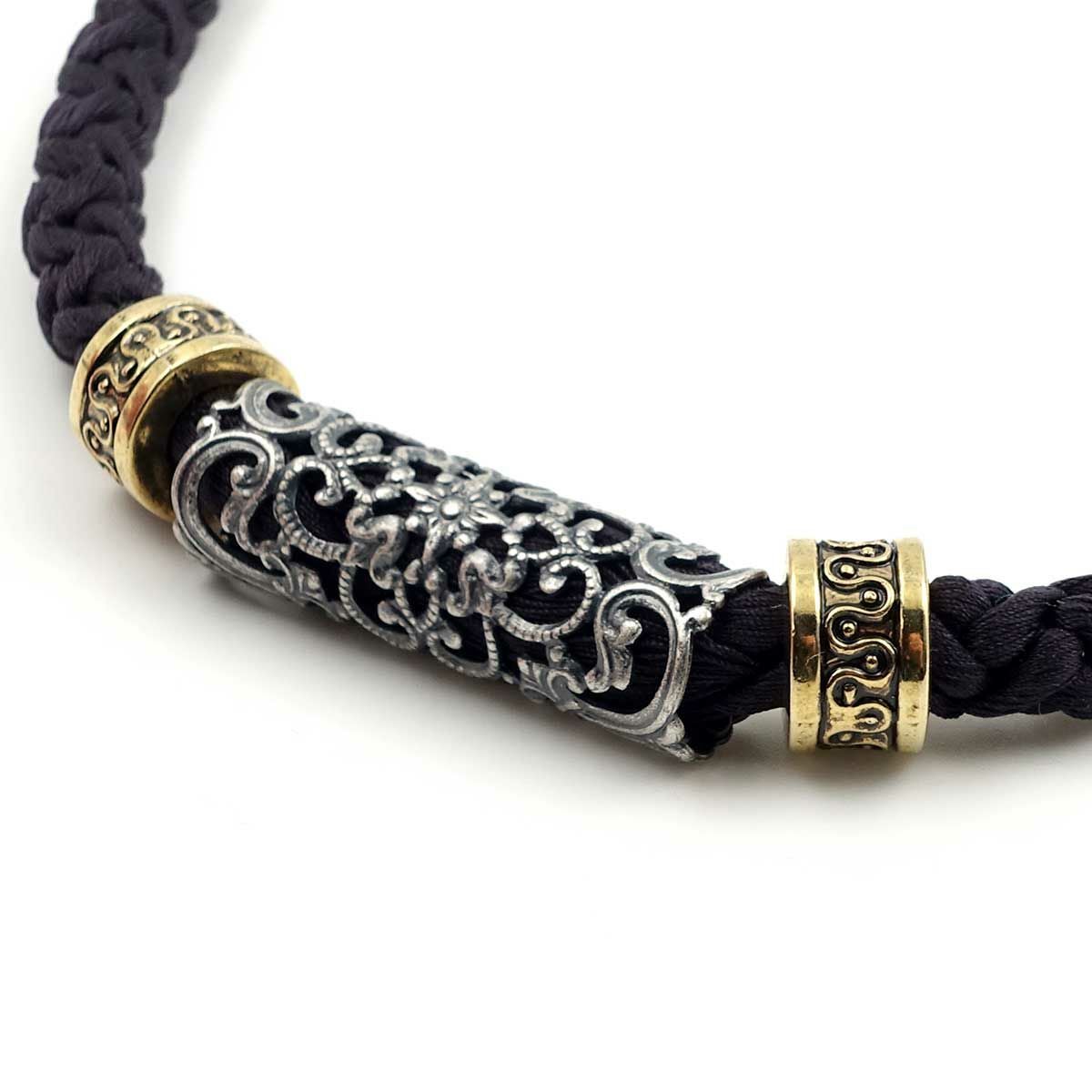羽織紐 男 清水焼 無双 正絹 茶×黒紺