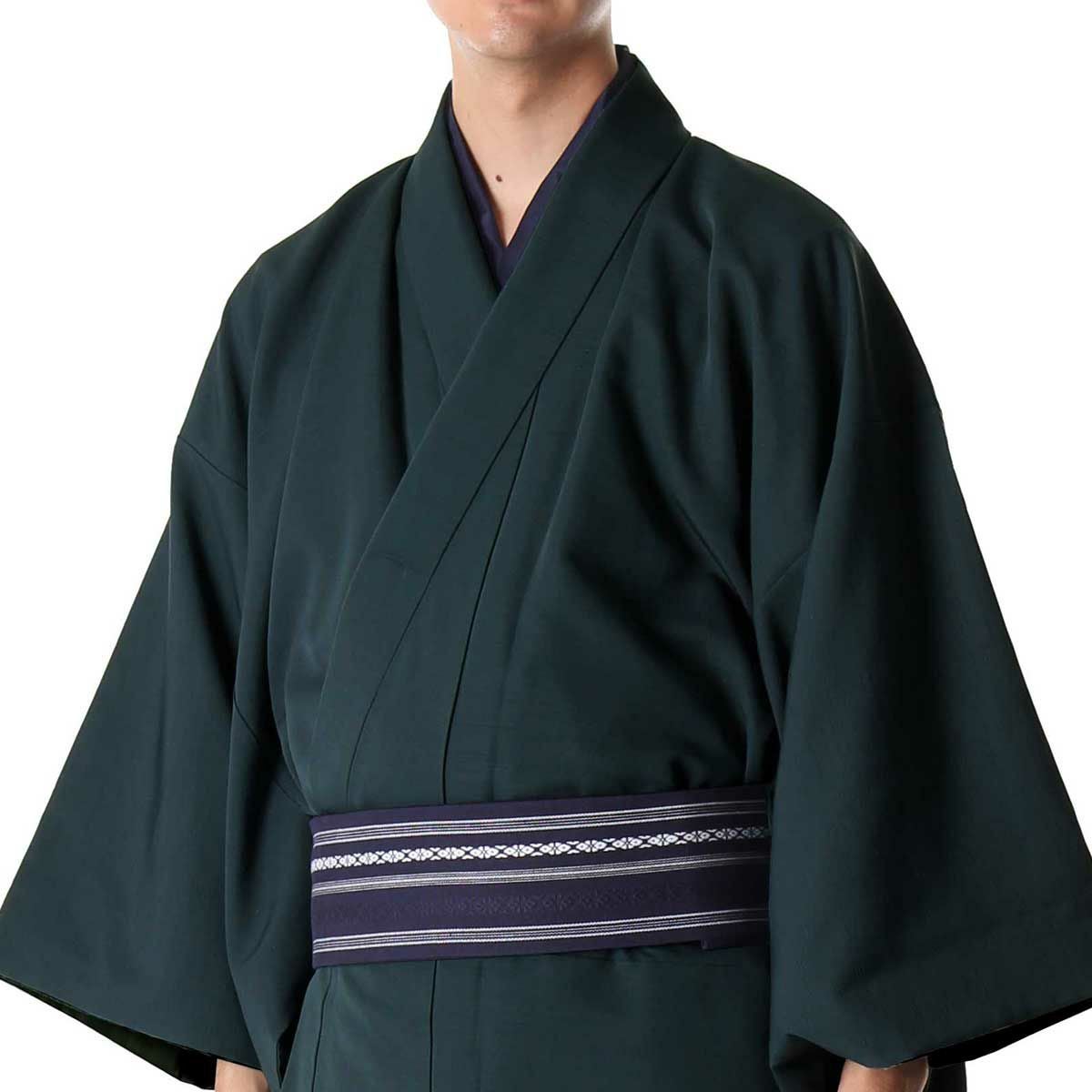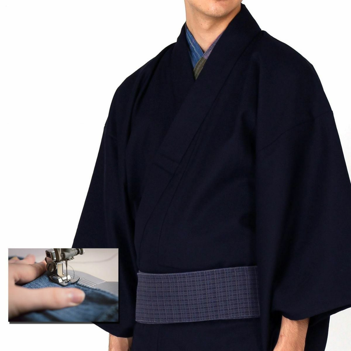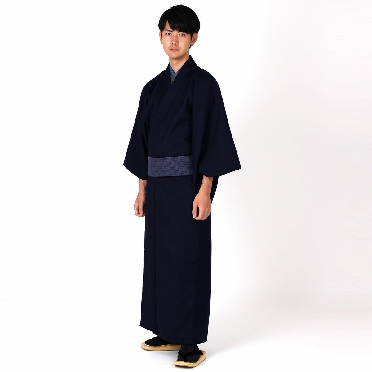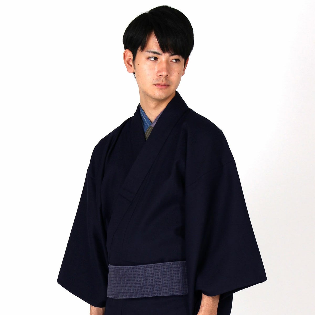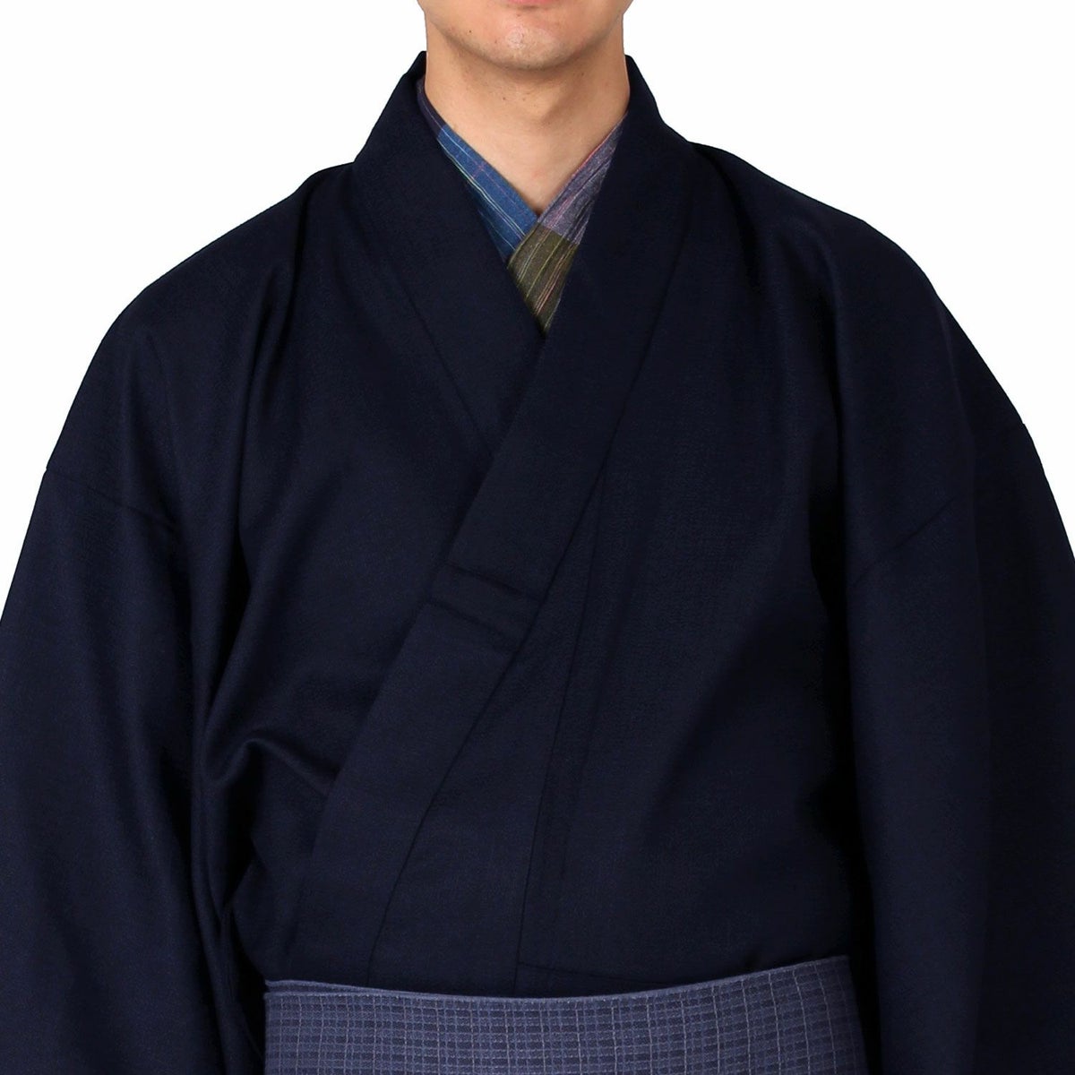 すぐに着られる男着物 洗える 紬 袷 鉄紺 175cm前後対応※裄(腕長さ)が短め