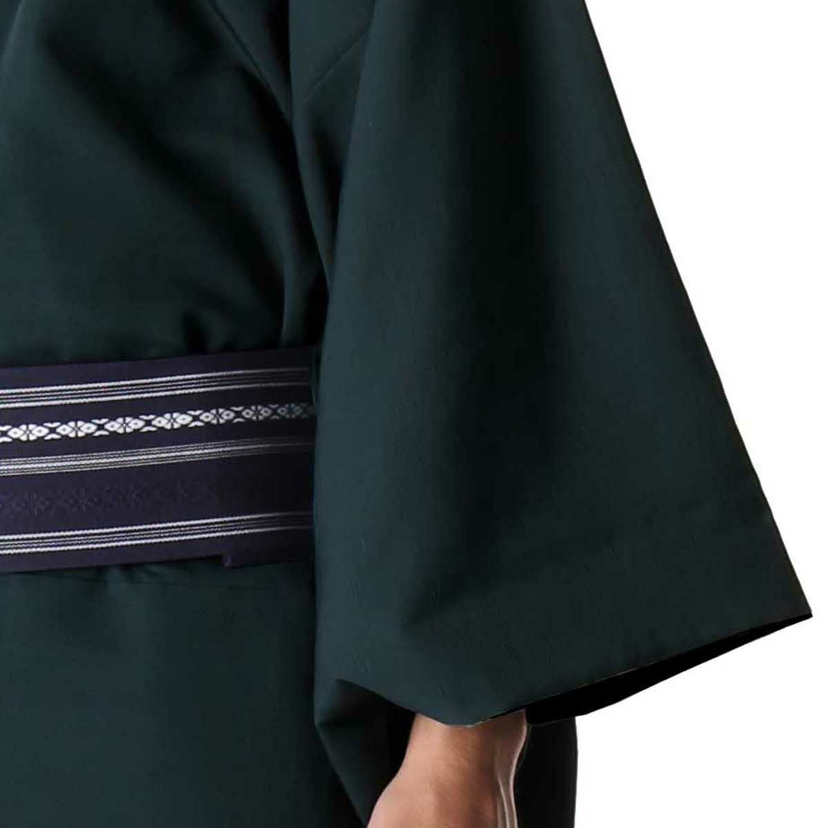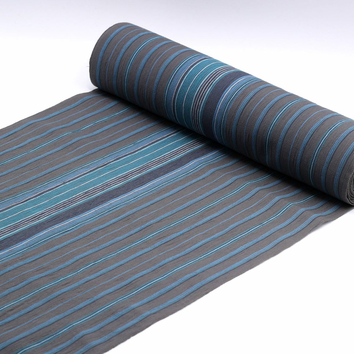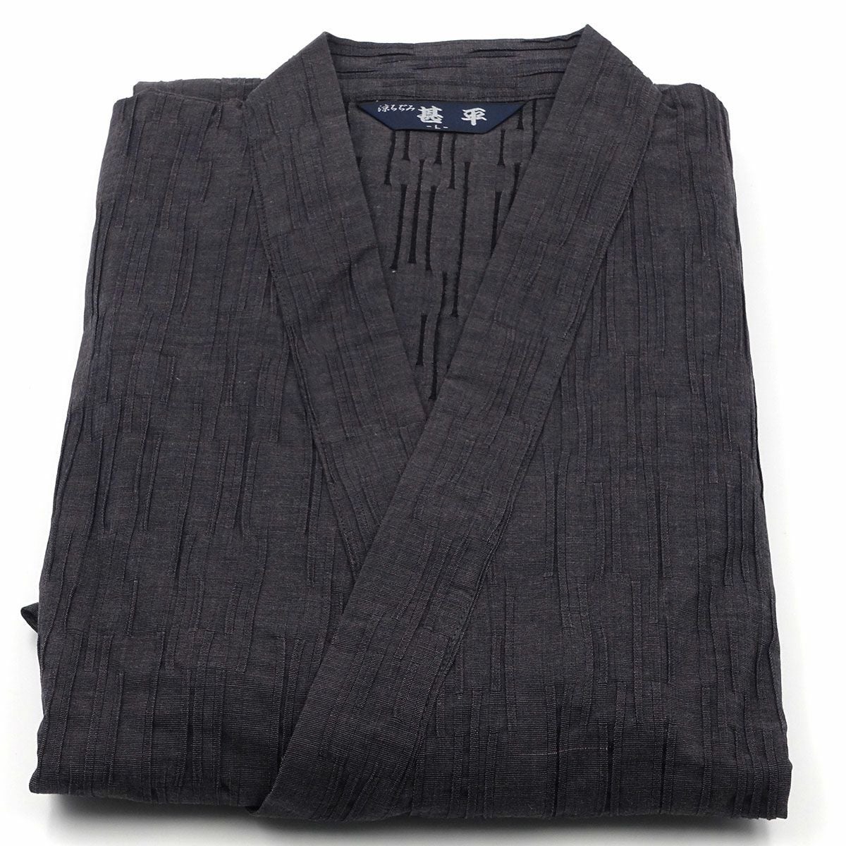 180cm前後対応 メンズ浴衣 単品 近江ちぢみ綿麻 モデル着用 濃グレー縞