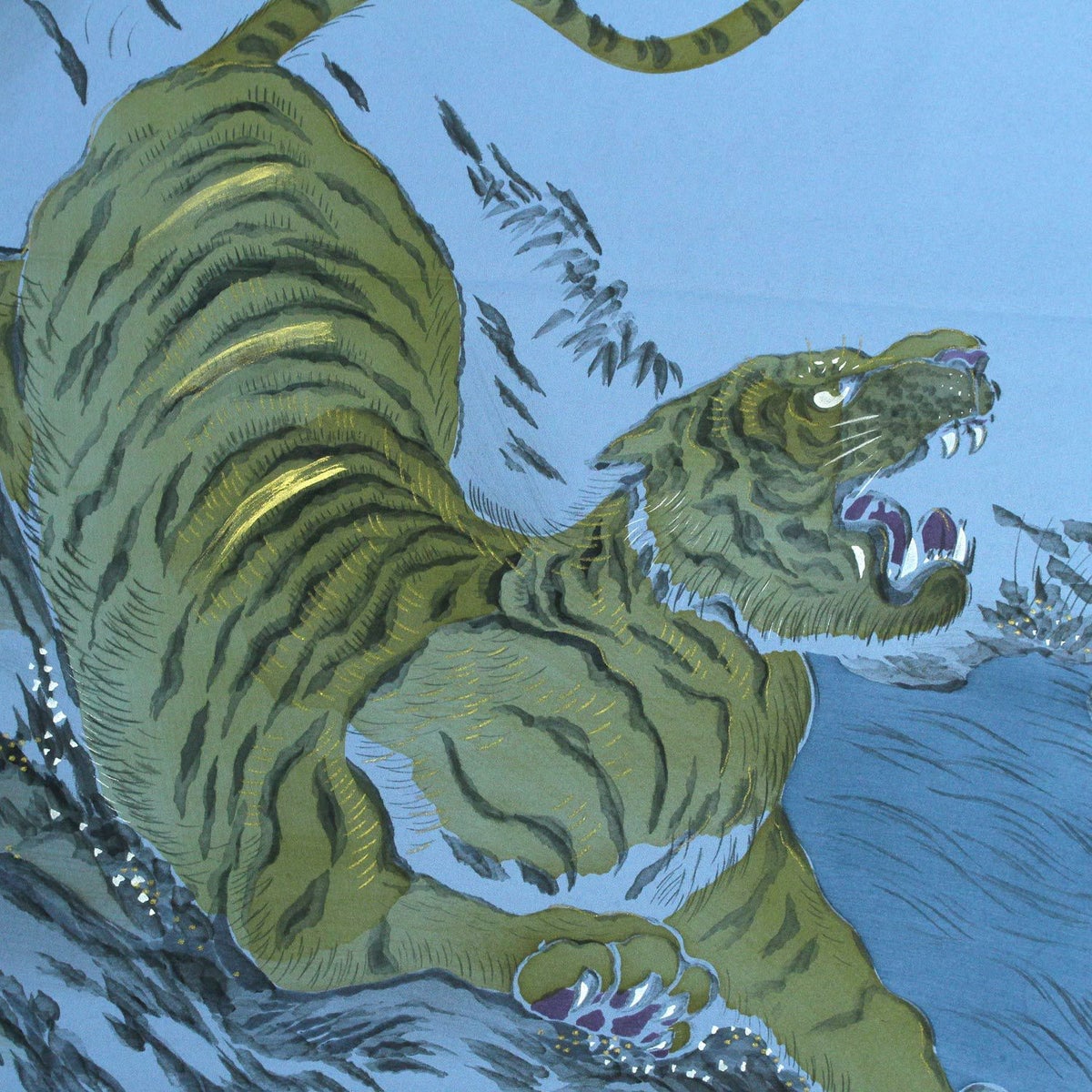 国内仕立て オーダー着物(もしくは羽織) 正絹 米沢織 紬 飛龍 ブルー
