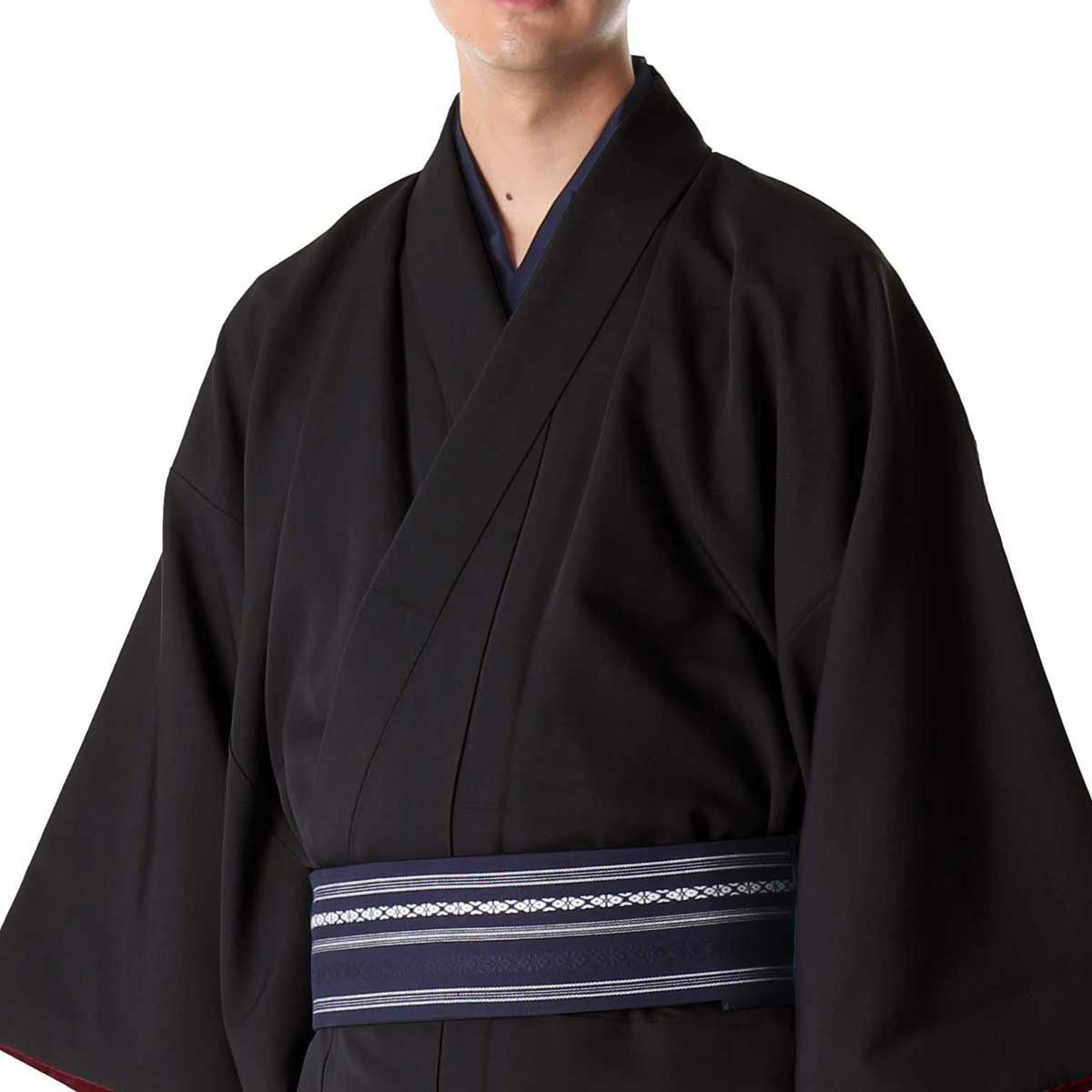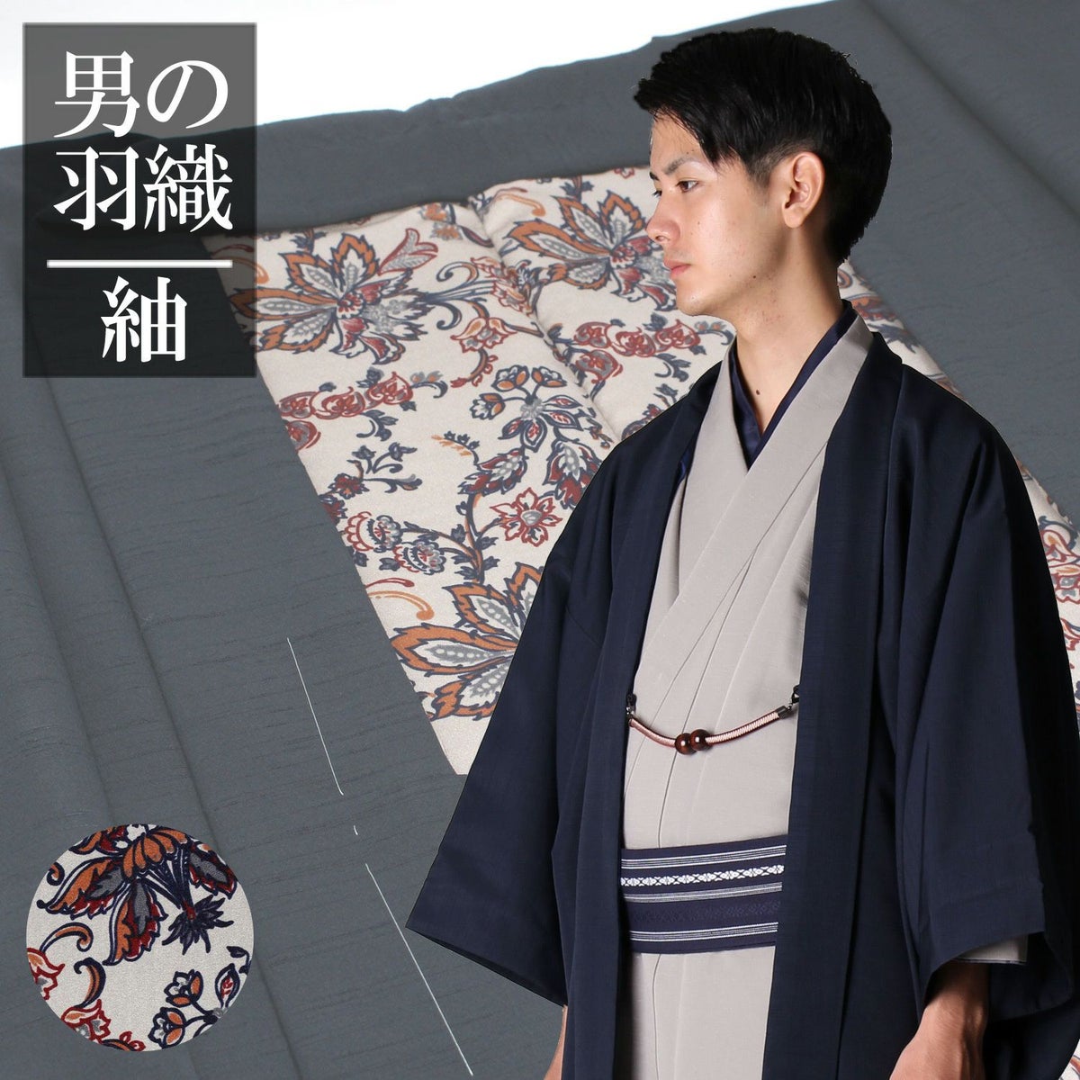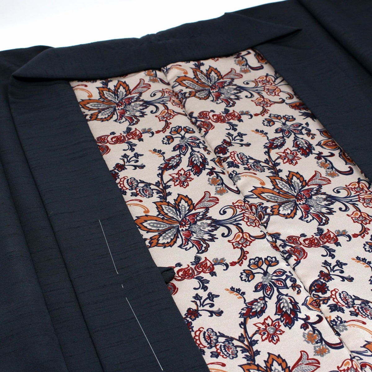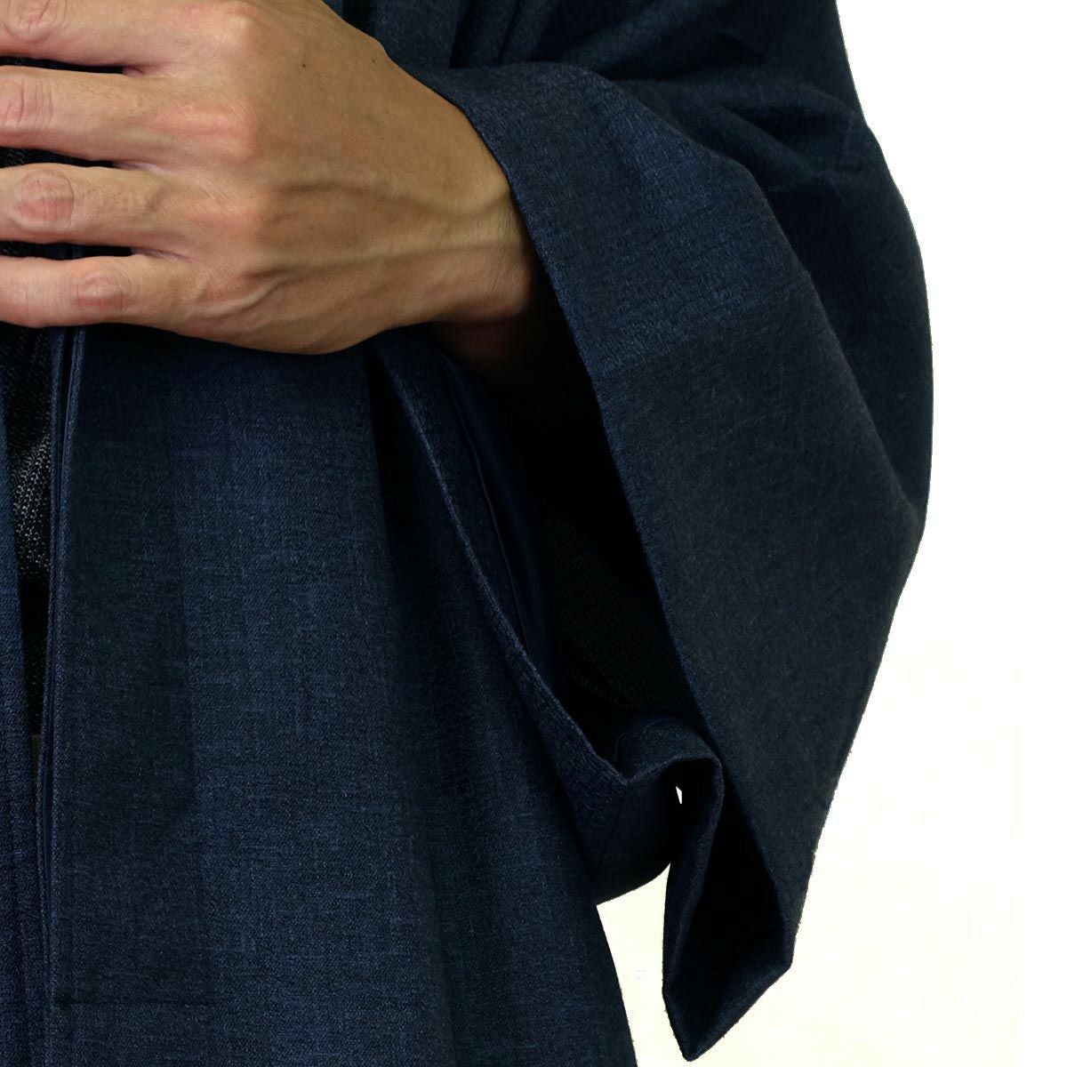 男羽織 洗える 袷 紬無地 濃紺 エスニック風 (7661)