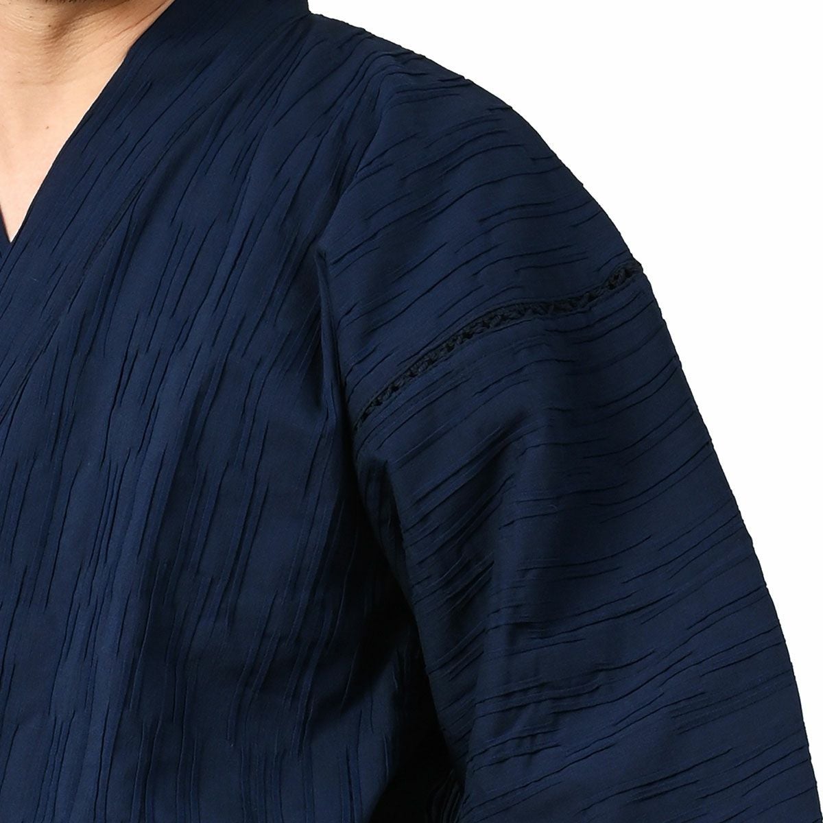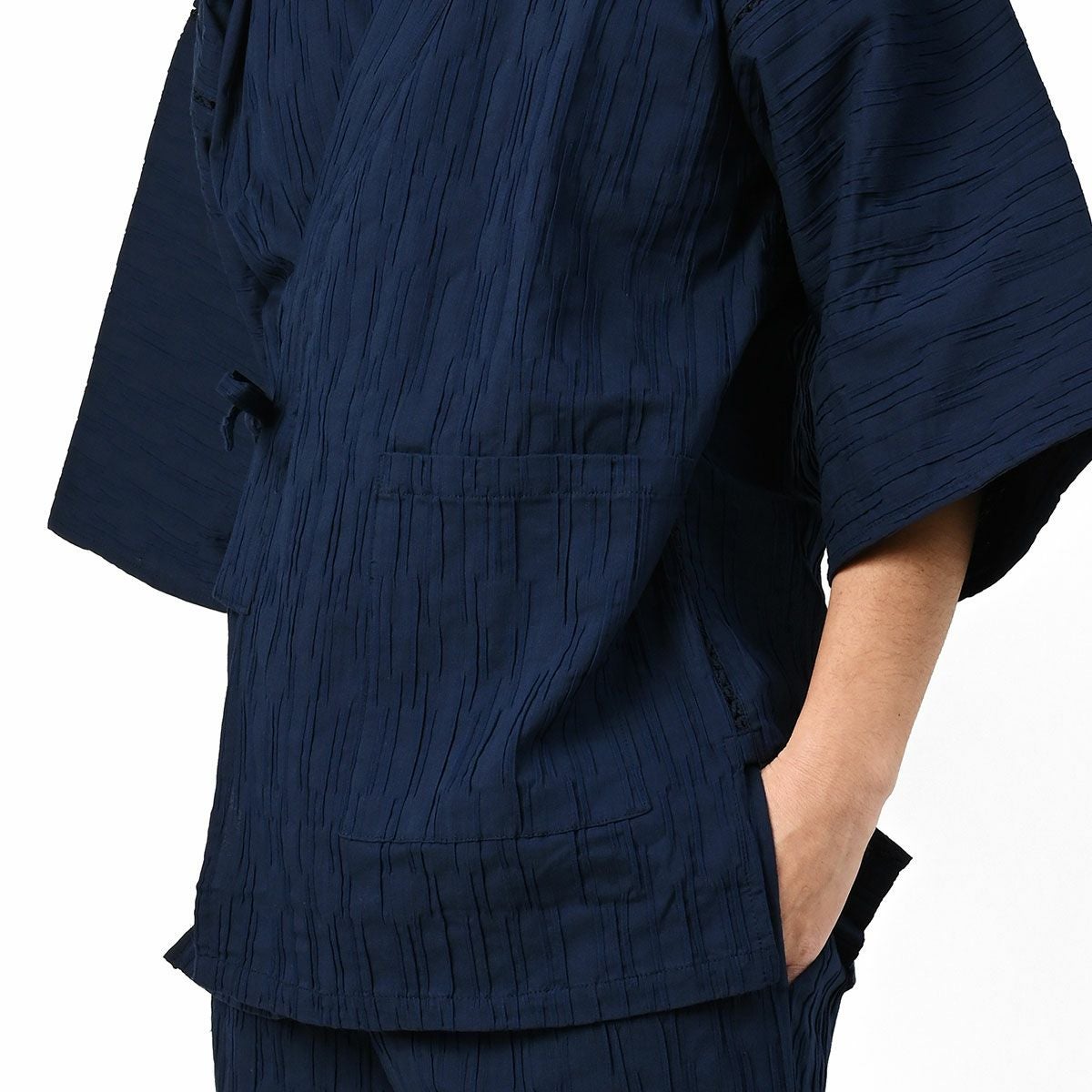 涼ちぢみ ストレッチ甚平 濃紺 Mサイズ