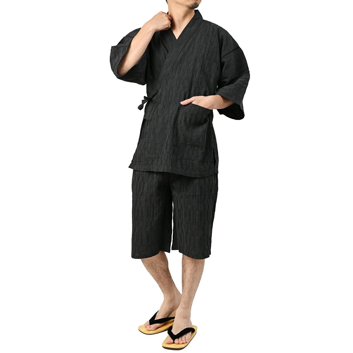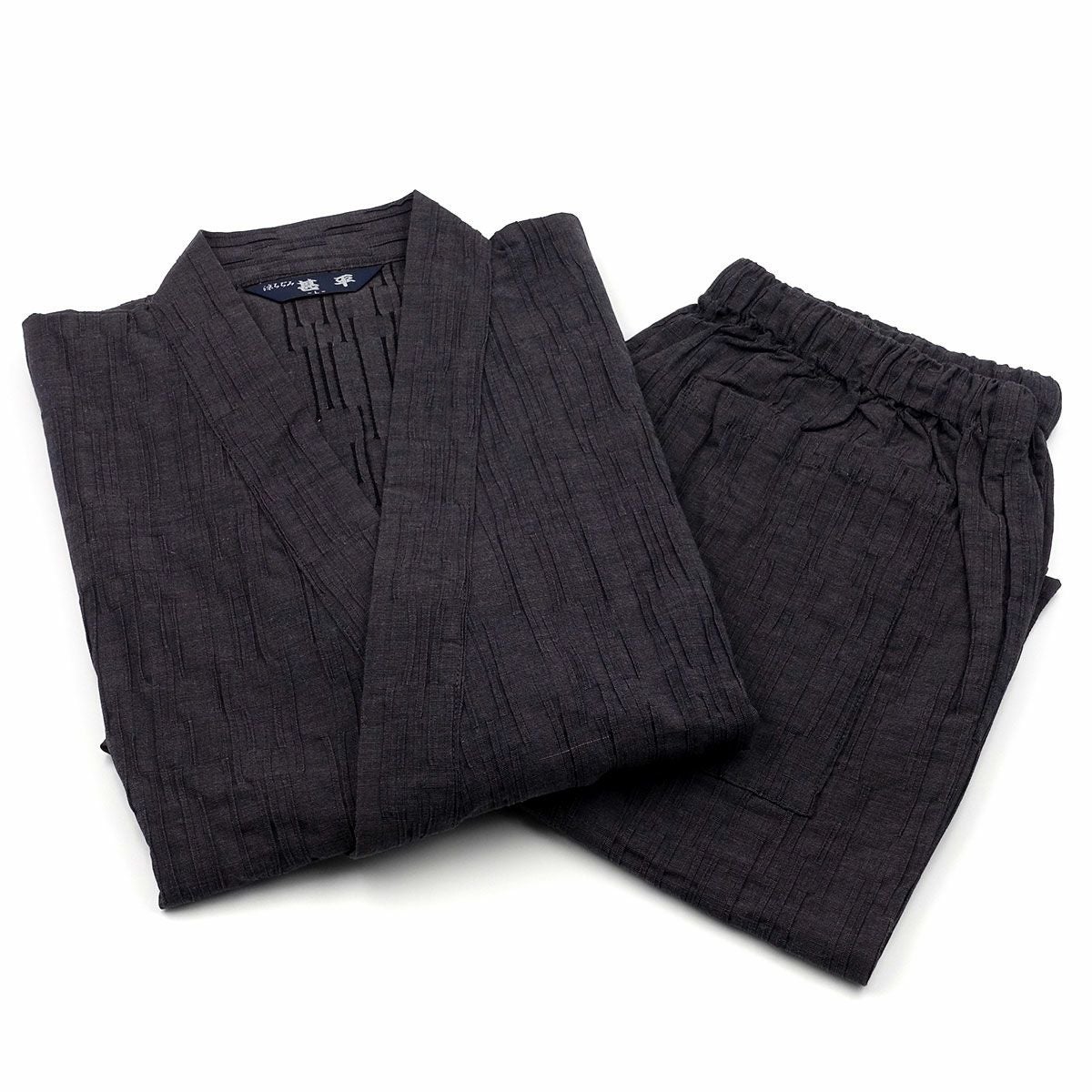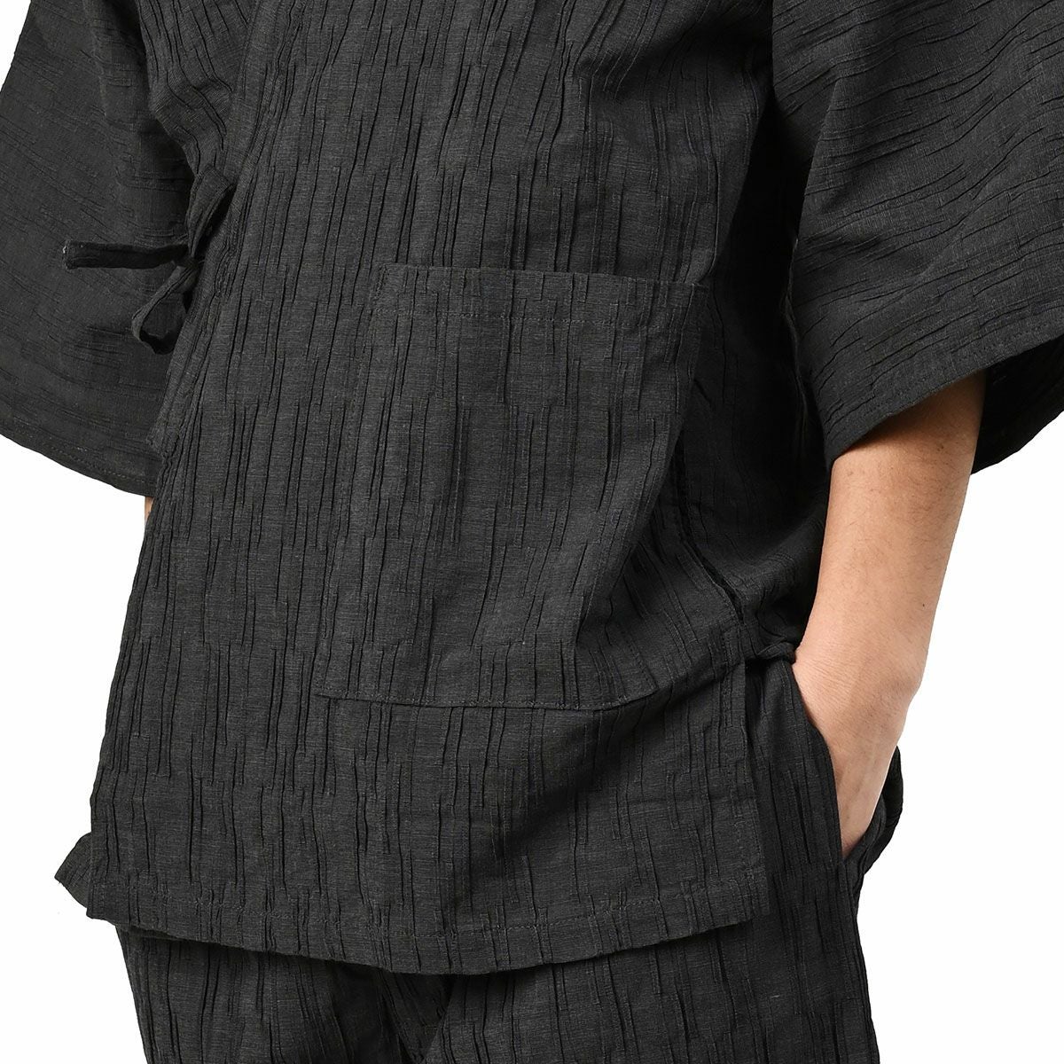 甚平 メンズ 涼ちぢみ 濃グレー ストレッチ