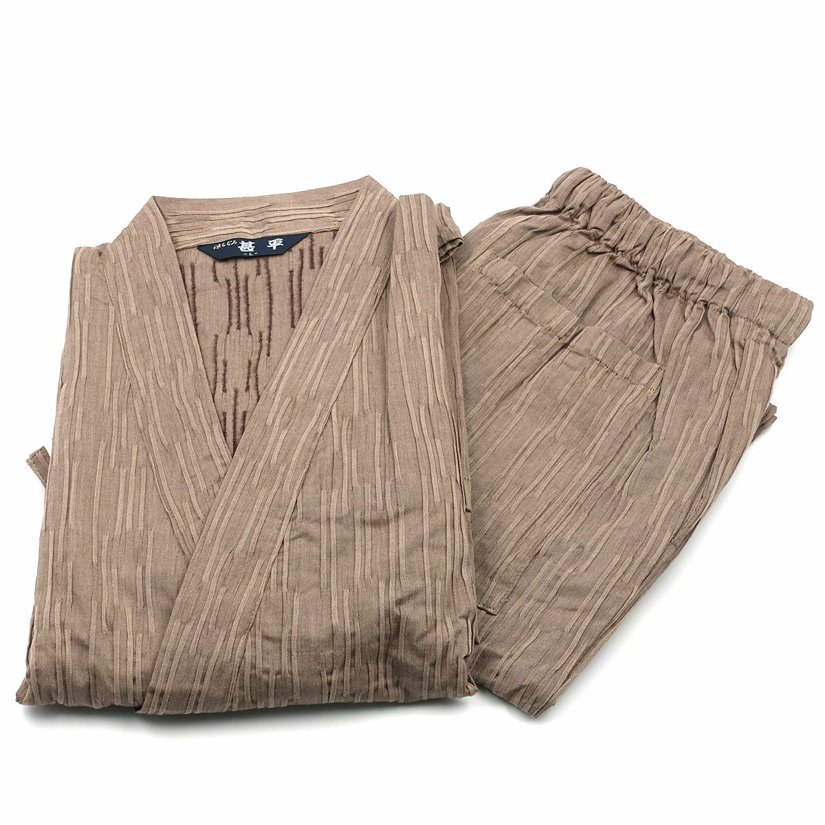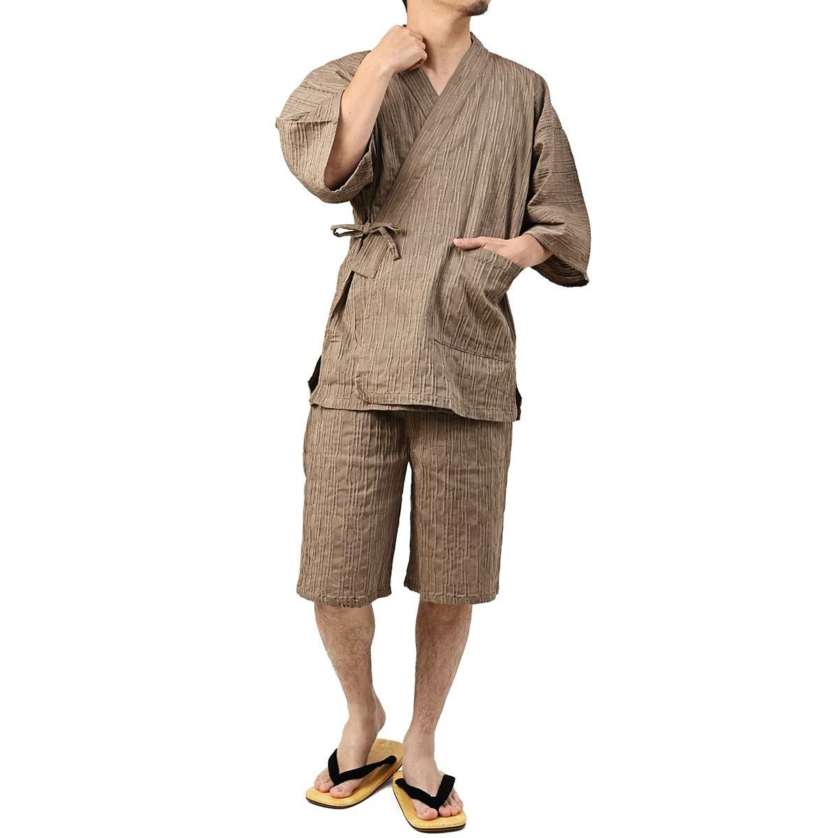 甚平 メンズ 涼ちぢみ 茶 ストレッチ 165ccm~185cm位まで対応