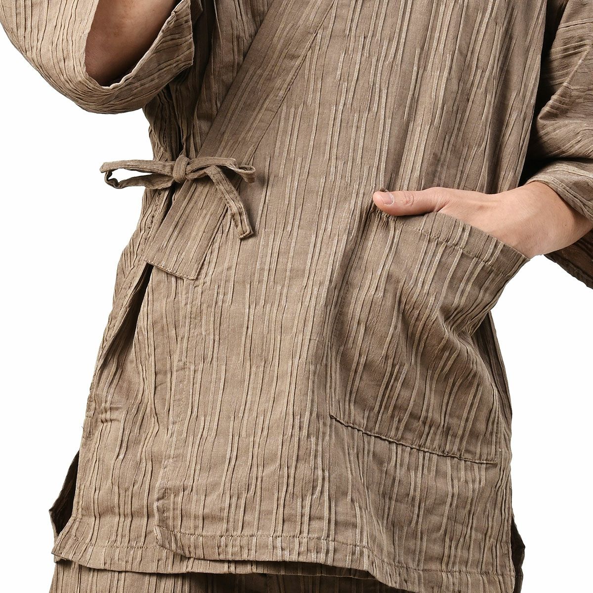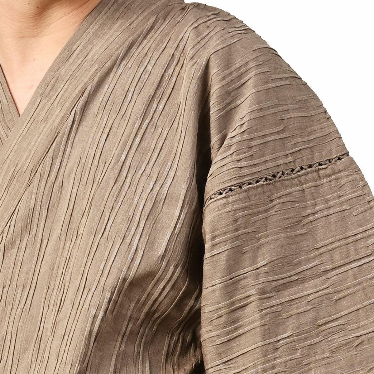 涼ちぢみ ストレッチ甚平 茶 Mサイズ
