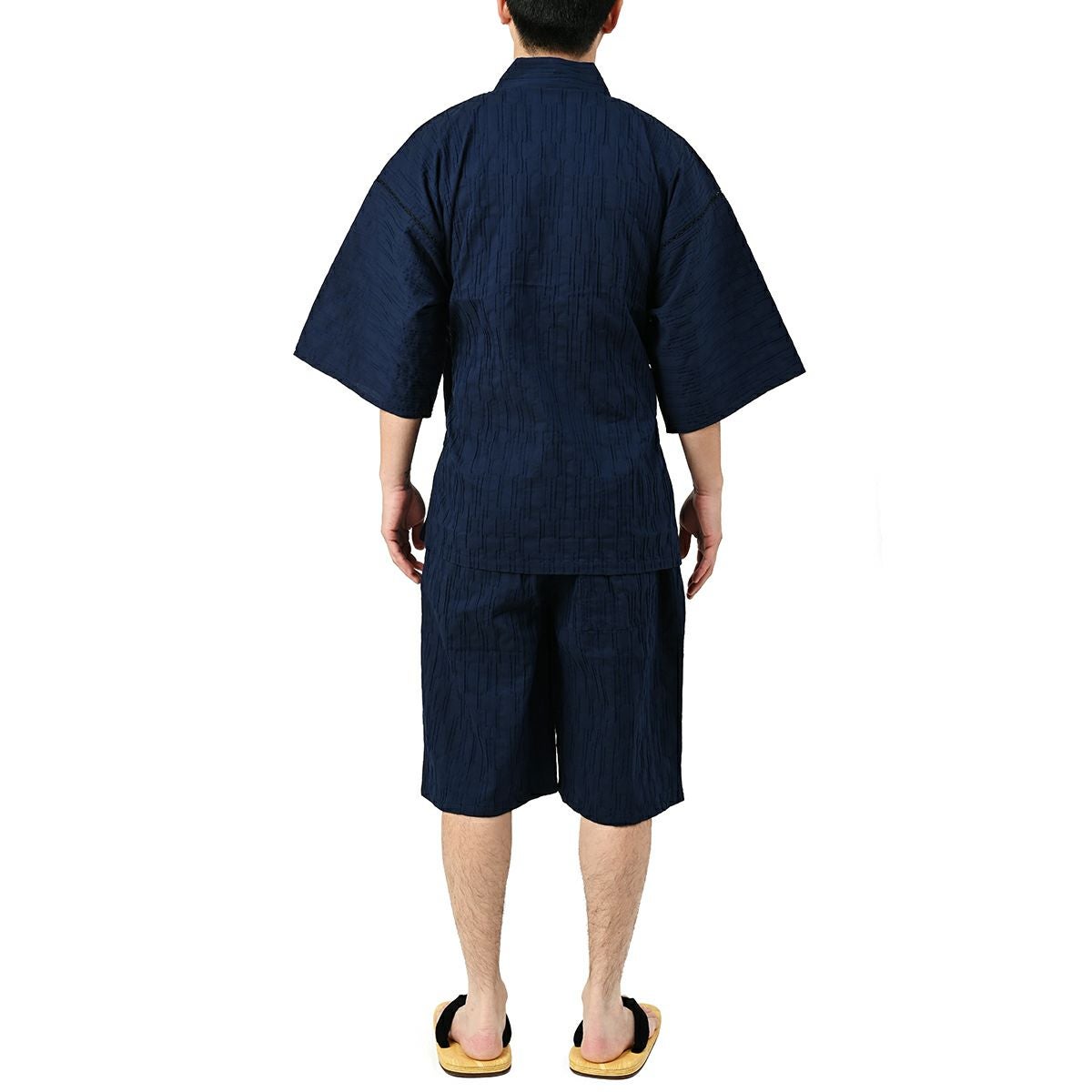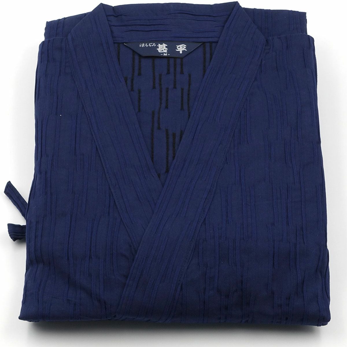 甚平 メンズ 涼ちぢみ 濃紺 ストレッチ 165cm~170cm位まで対応