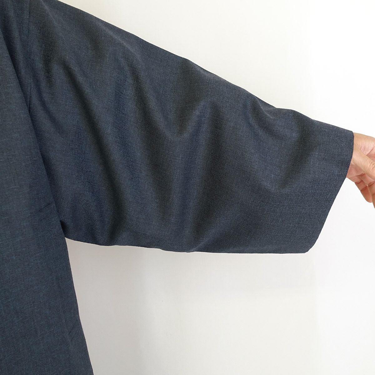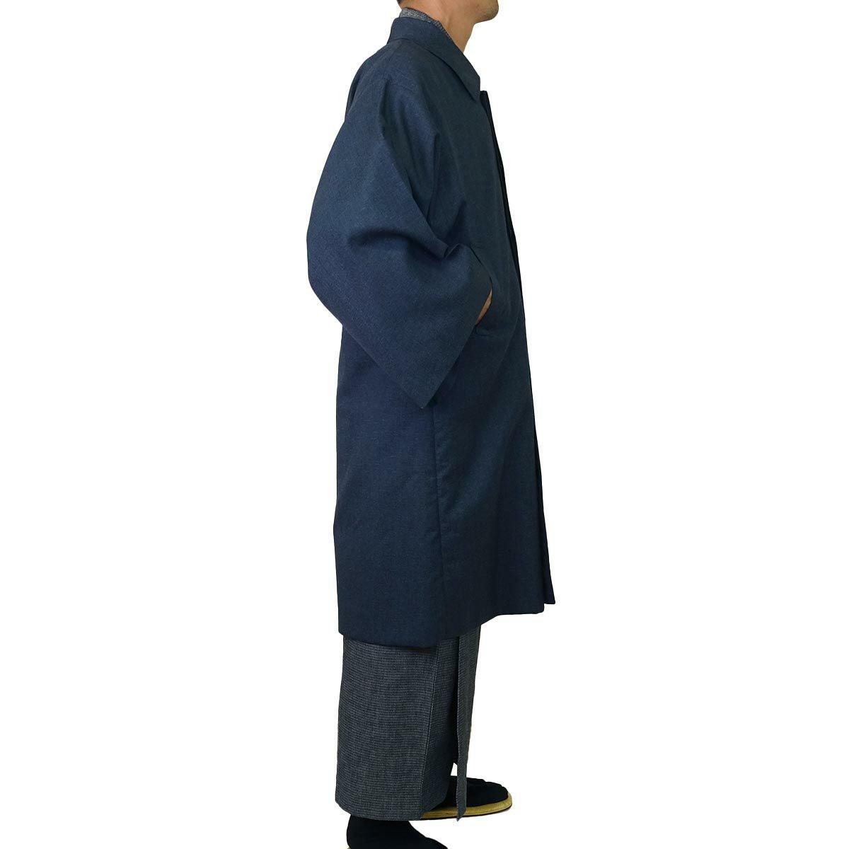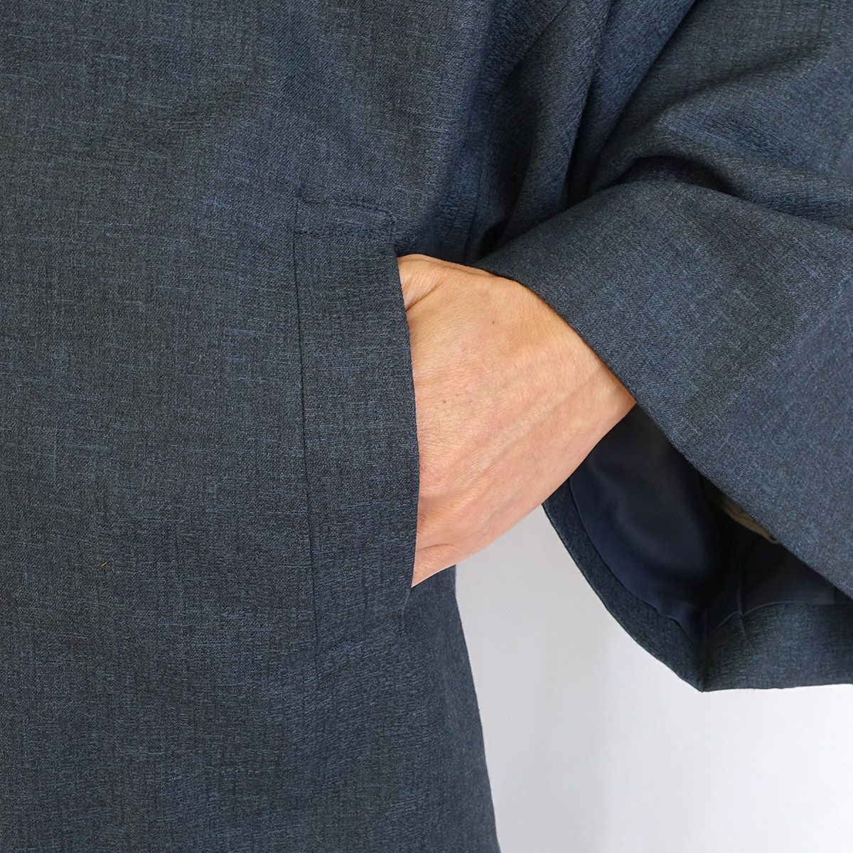 コート メンズ ウール紋もじり紬 紺 Mサイズ 日本製