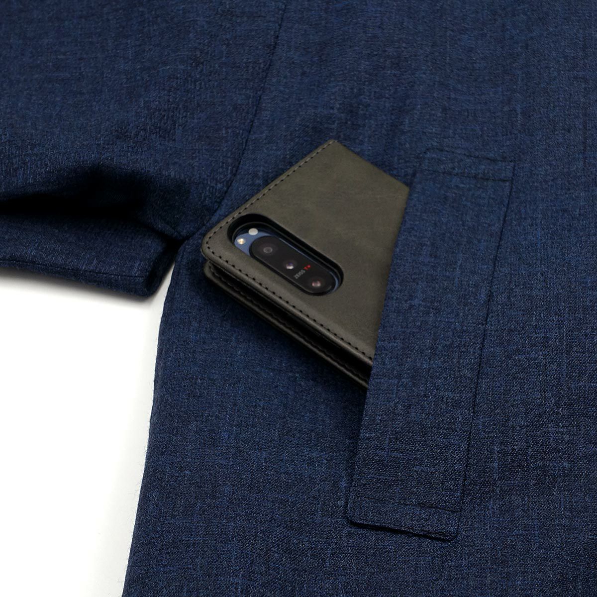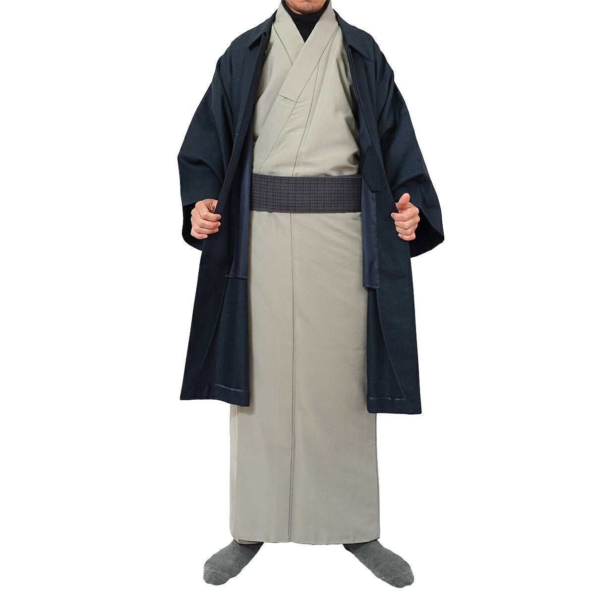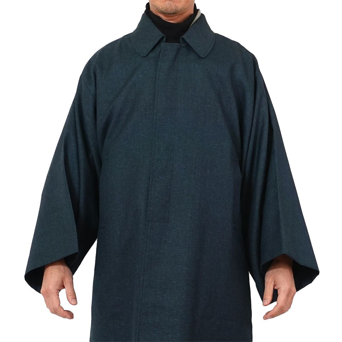 コート メンズ ウール紋もじり紬 紺 Mサイズ 日本製