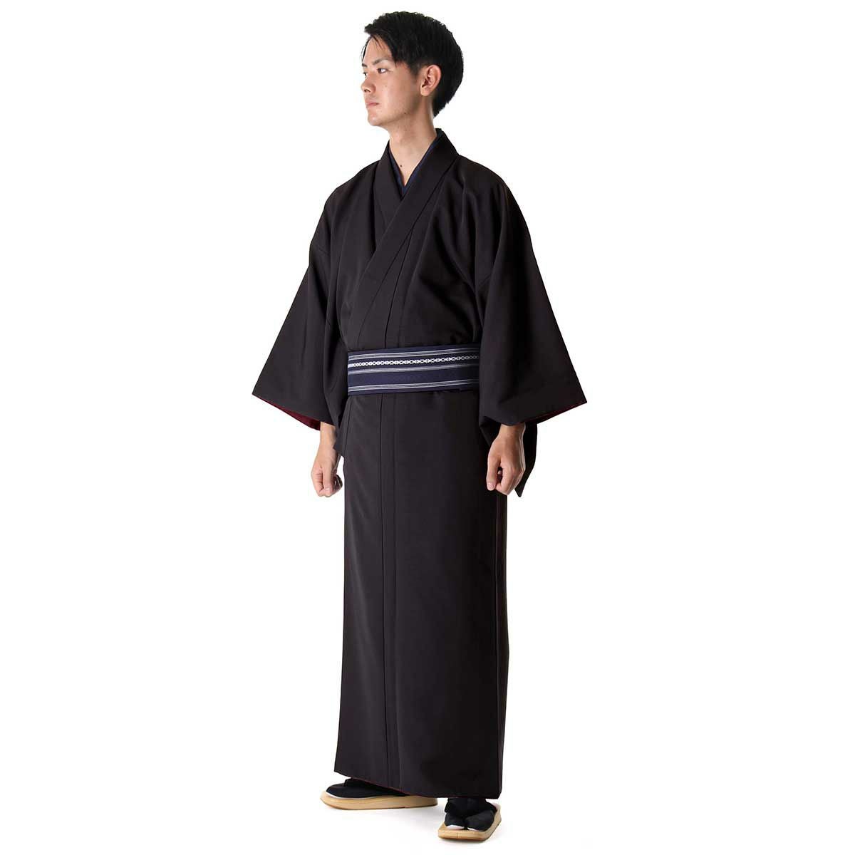 すぐに着られる男着物 洗える 紬 袷 黒 175cm前後対応※裄(腕長さ)が短め