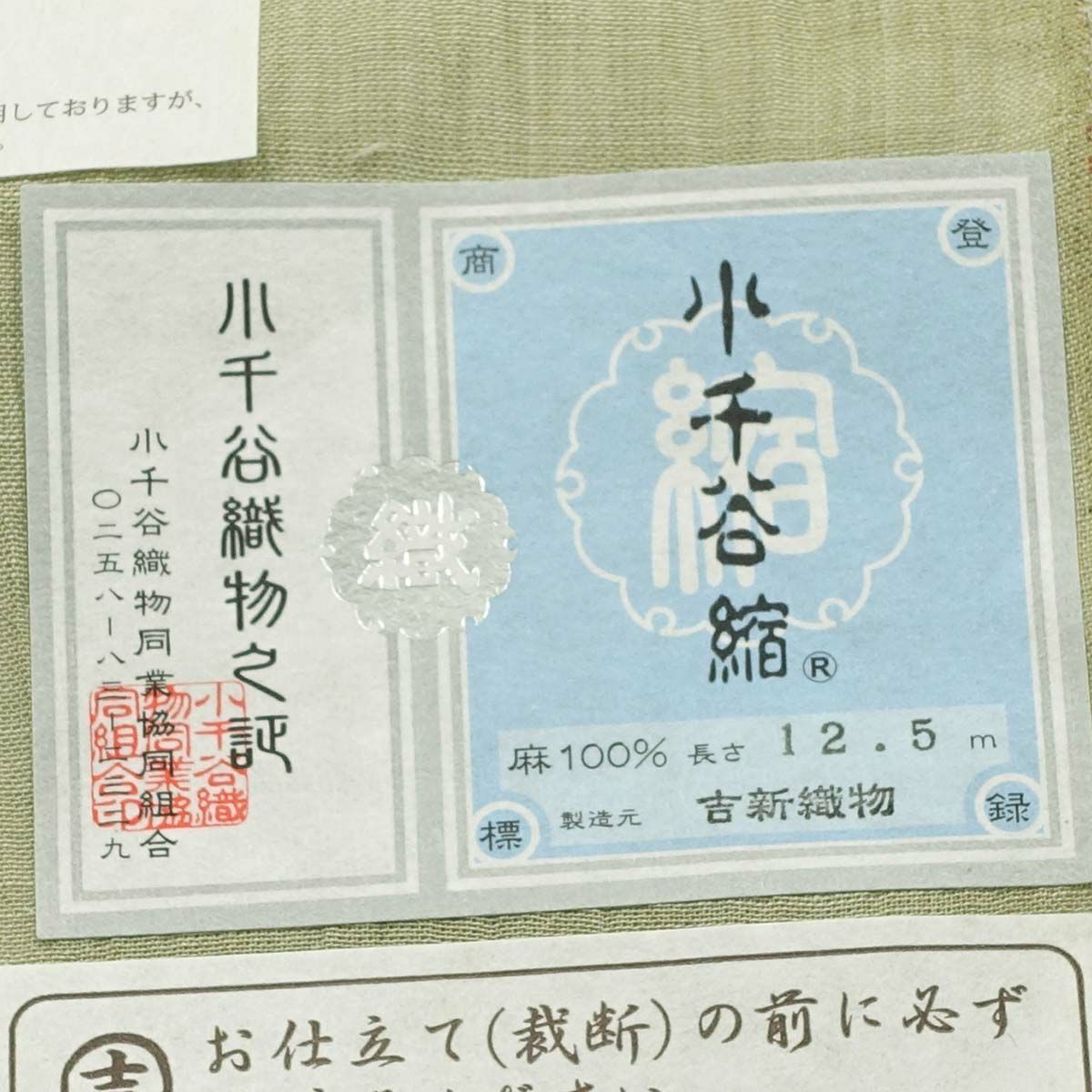 仕立てオーダー浴衣 夏着物 小千谷縮 本麻 鶯色 (8839)