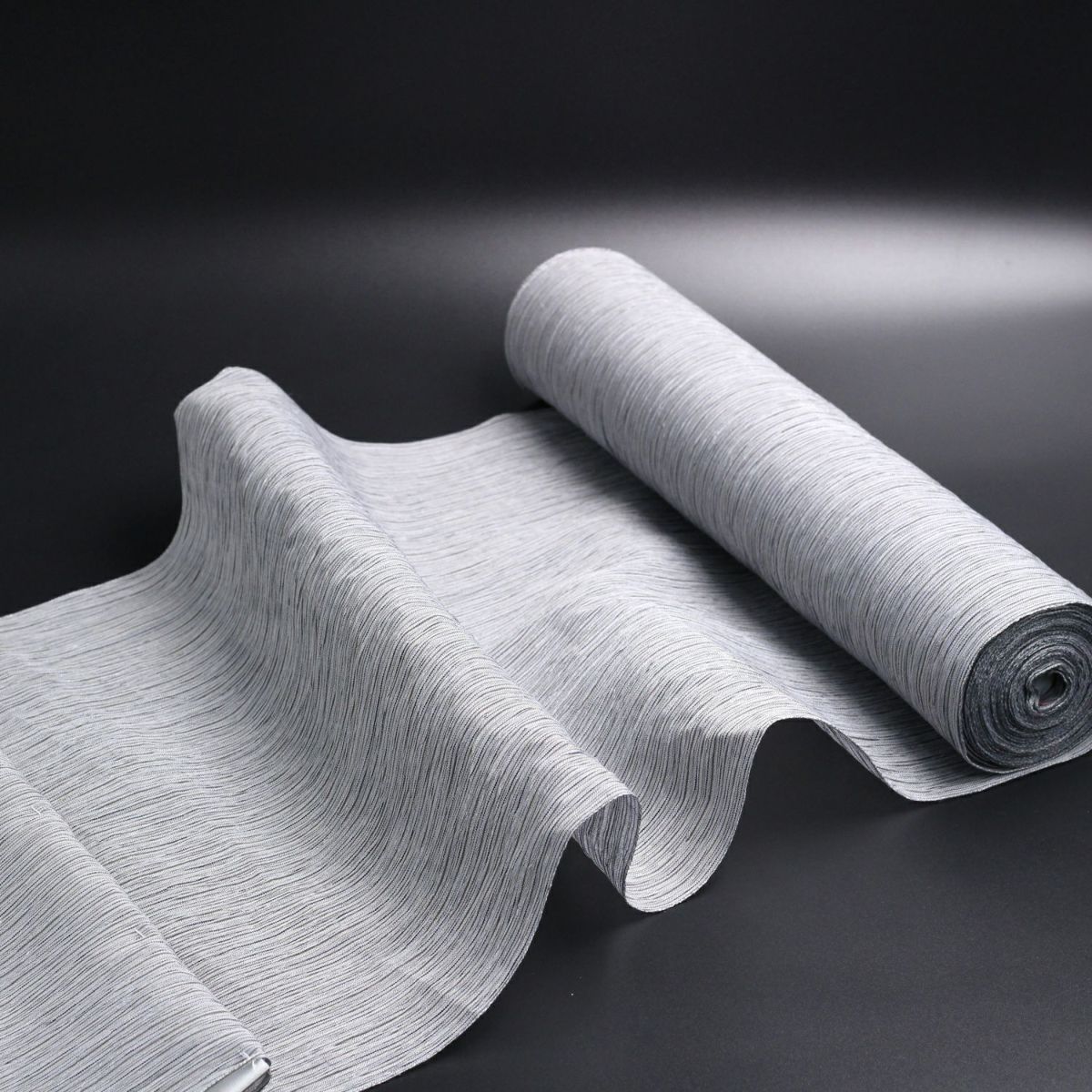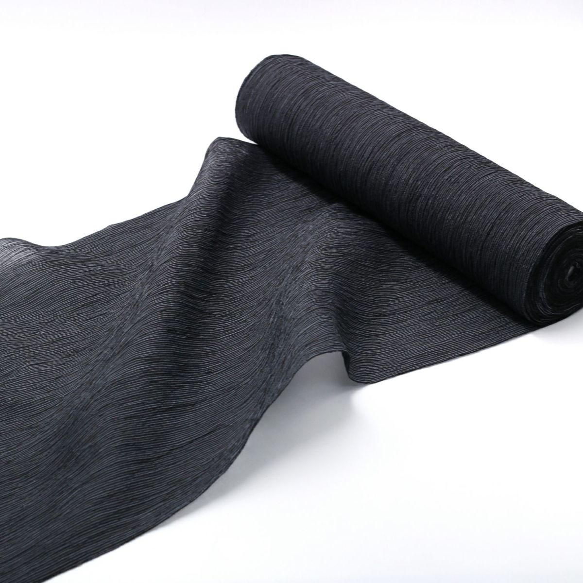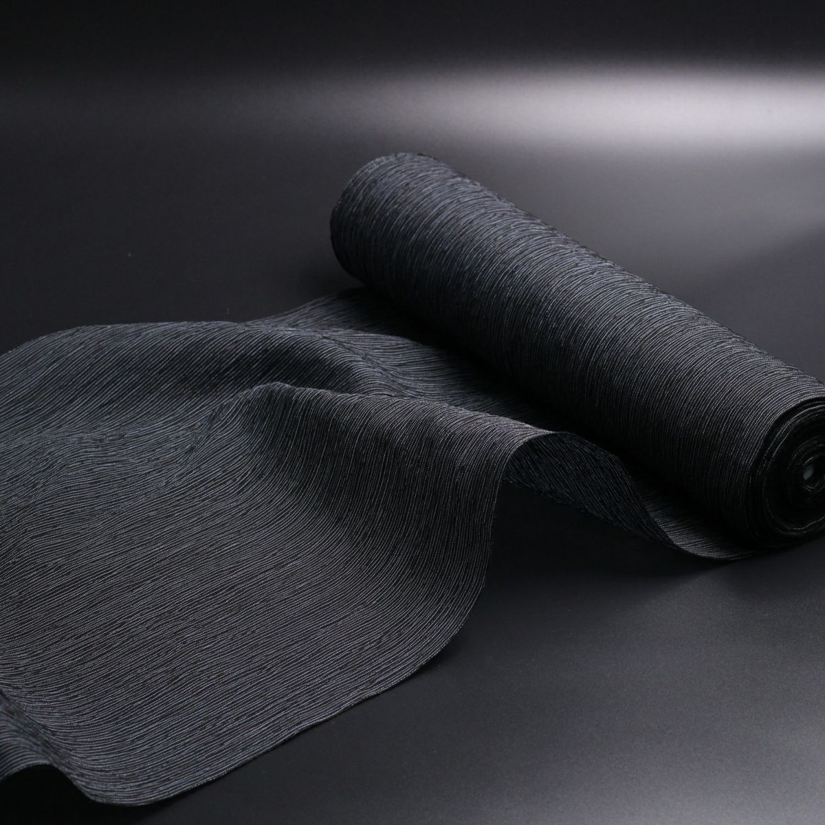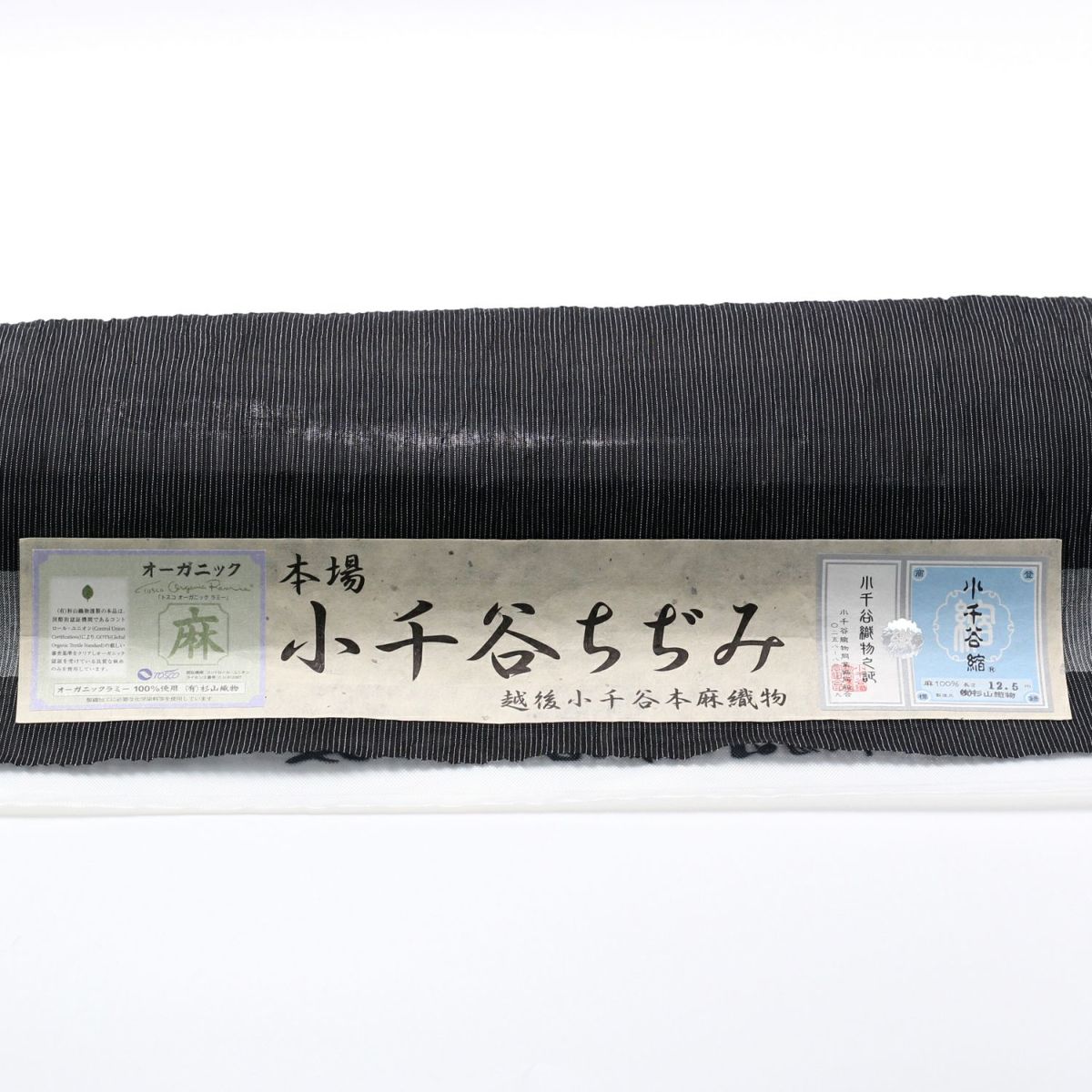 浴衣メンズ 夏着物 小千谷縮 本麻 反物 黒縞 (7909)