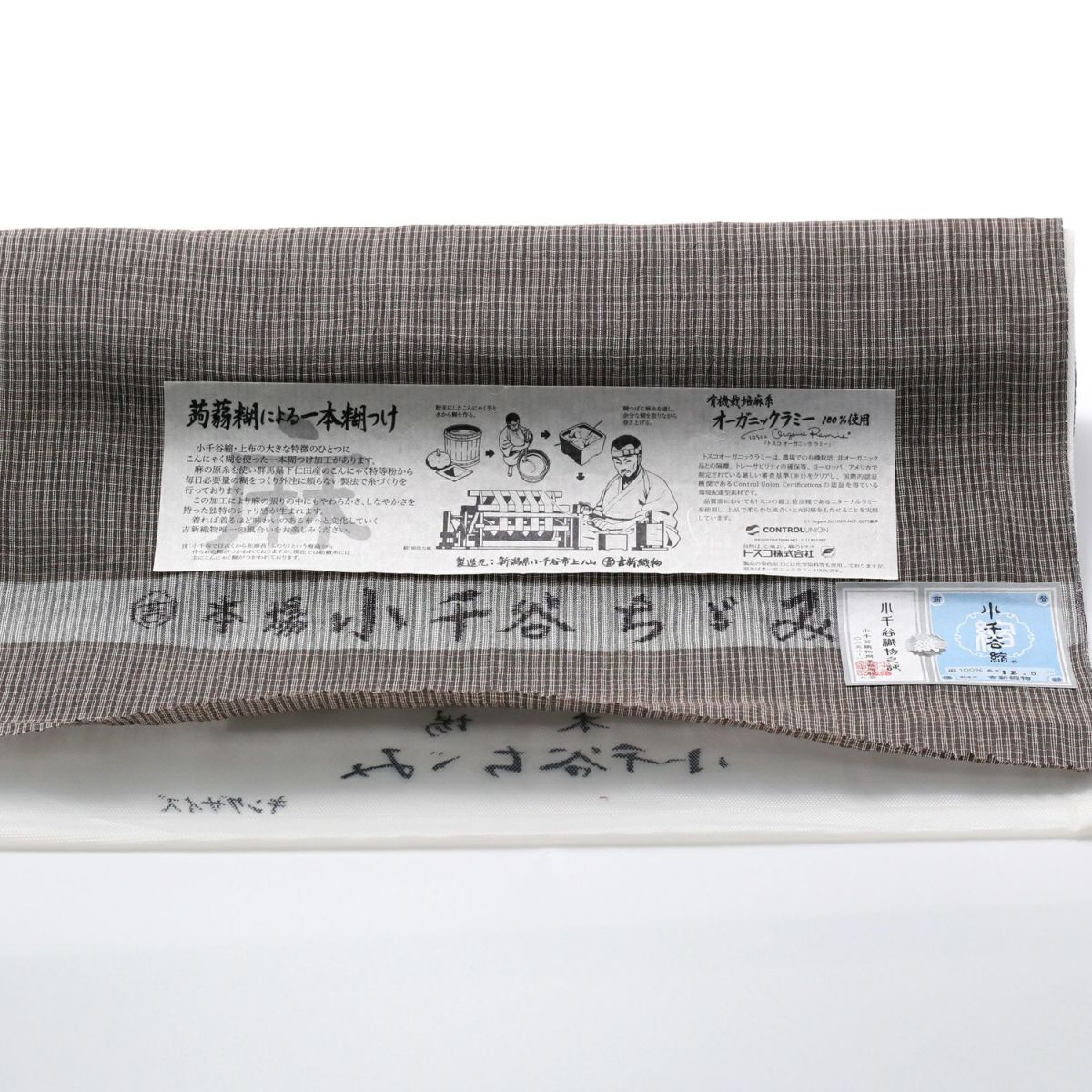仕立てオーダー浴衣 夏着物 小千谷縮 本麻 淡茶 (7831)