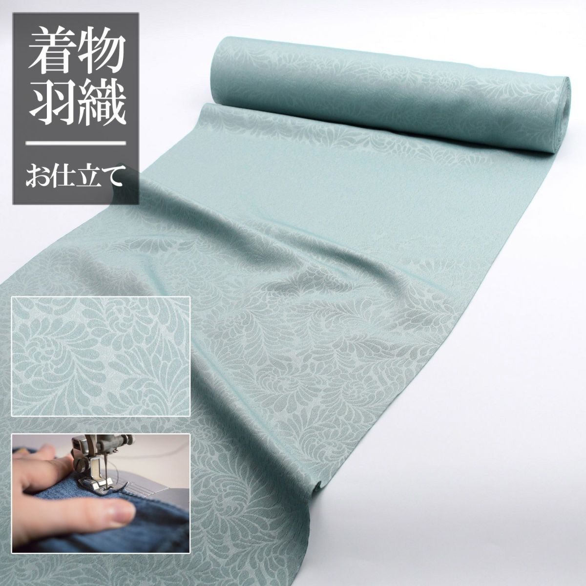 仕立てオーダー着物(もしくは羽織) 洗える着物 エンボス加工 ハナエモリ 緑 (7640)
