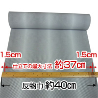 縫い代は両端に必要になるので反物巾40cm−3cm(1.5cm+1.5cm)=37cmが袖巾もしくは肩巾の最大寸法になります。